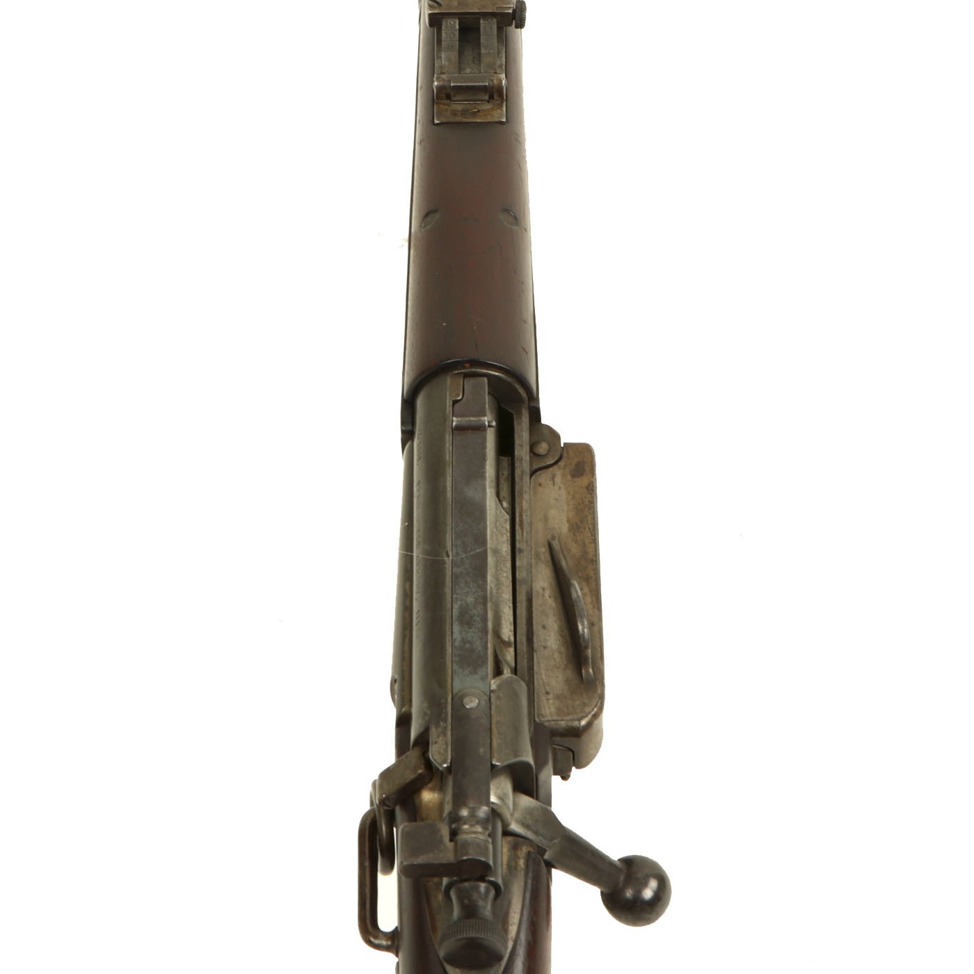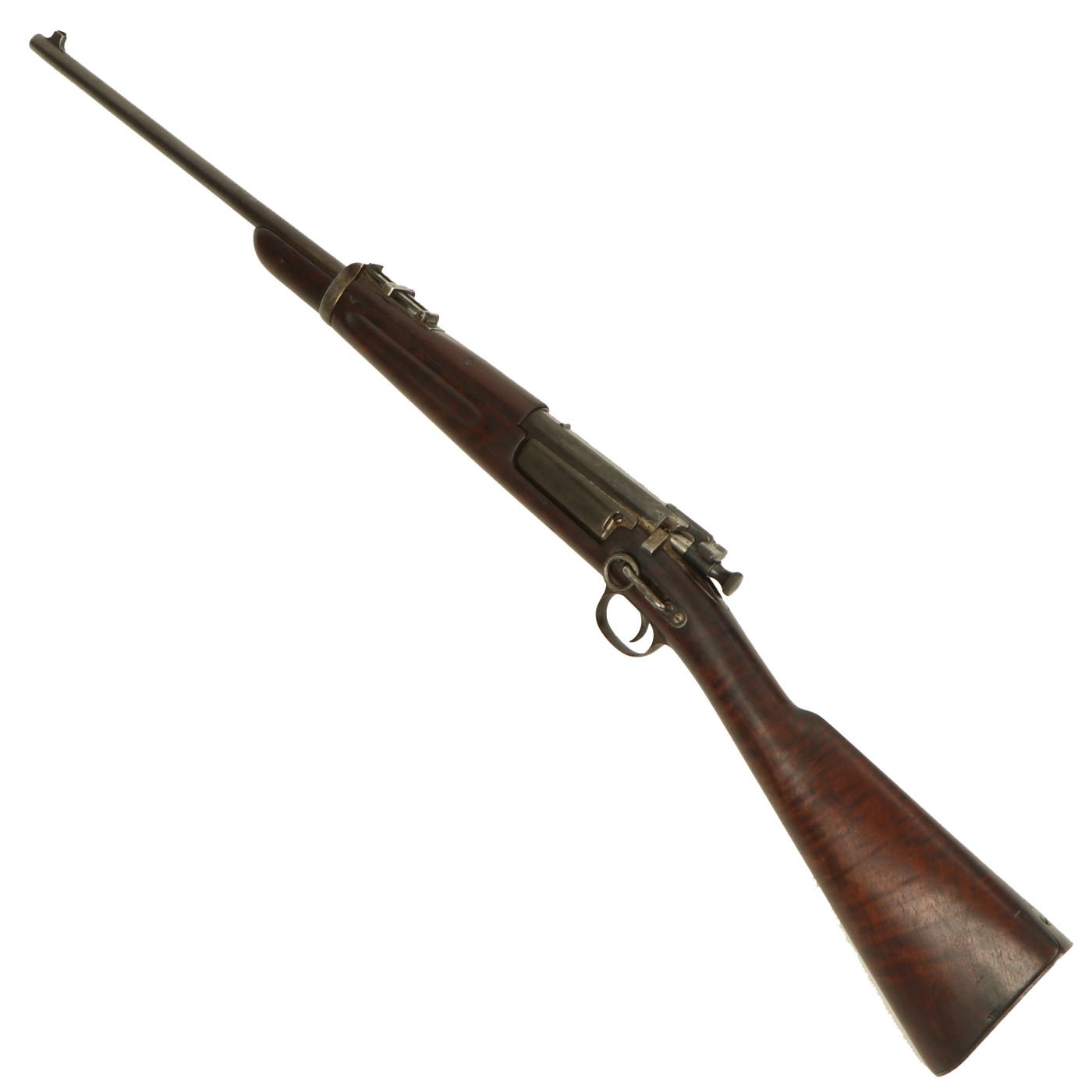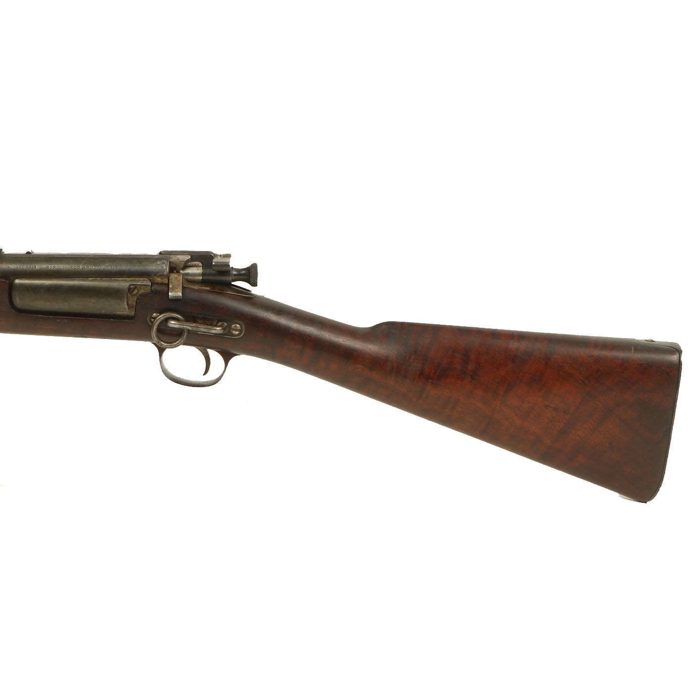 Original Item: Only One Available. This is great example of the very hard to find Springfield Model 1896 Krag–Jørgensen Carbine. Unlike most examples, this was not upgraded later to 1902 standards, and still is in the original configuration as issued. It is a rifle that saw service during the last days of mounted cavalry, and it really is exceptional, due to the highly figured walnut stock it has.