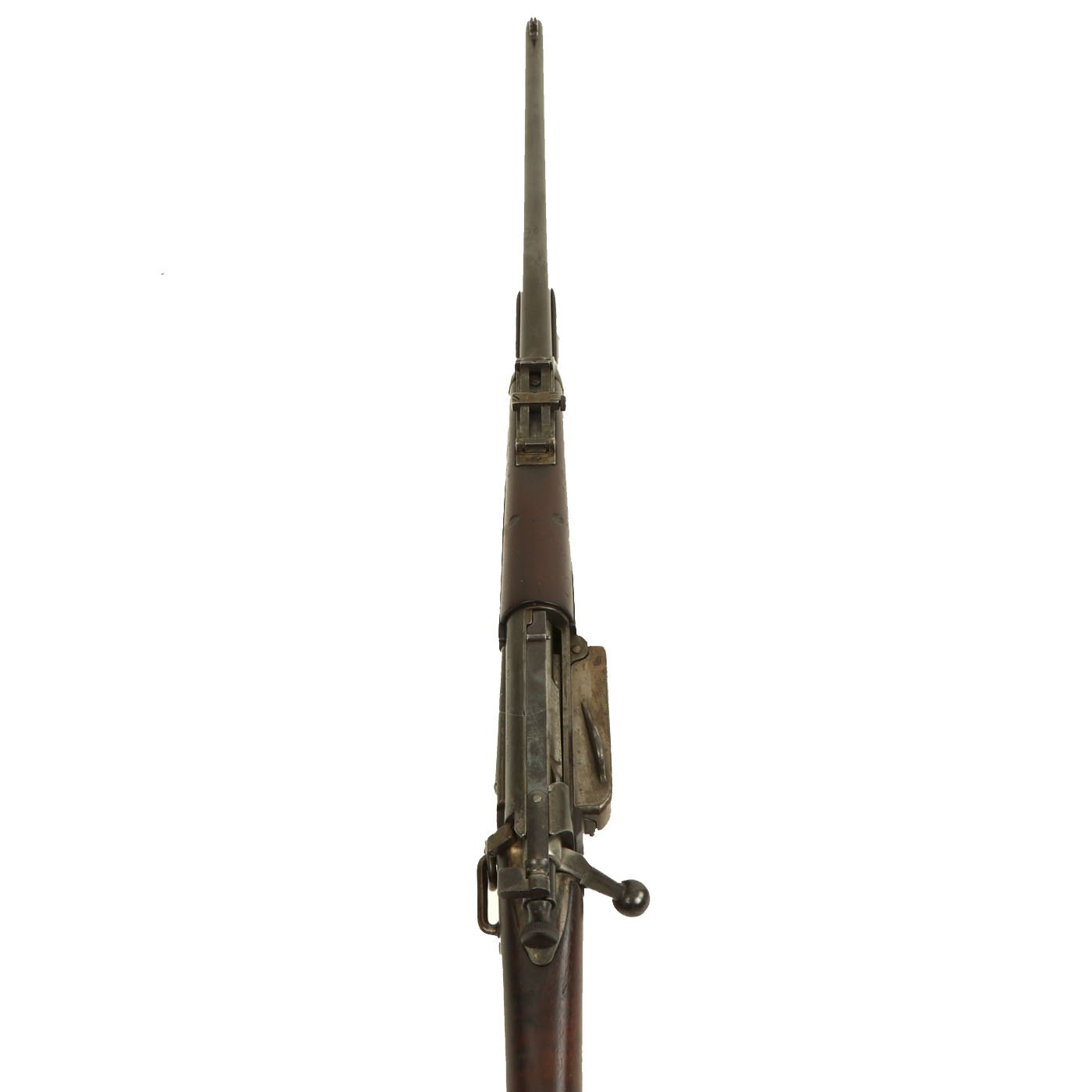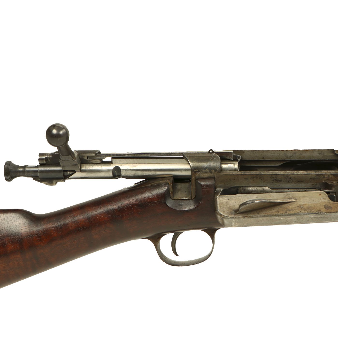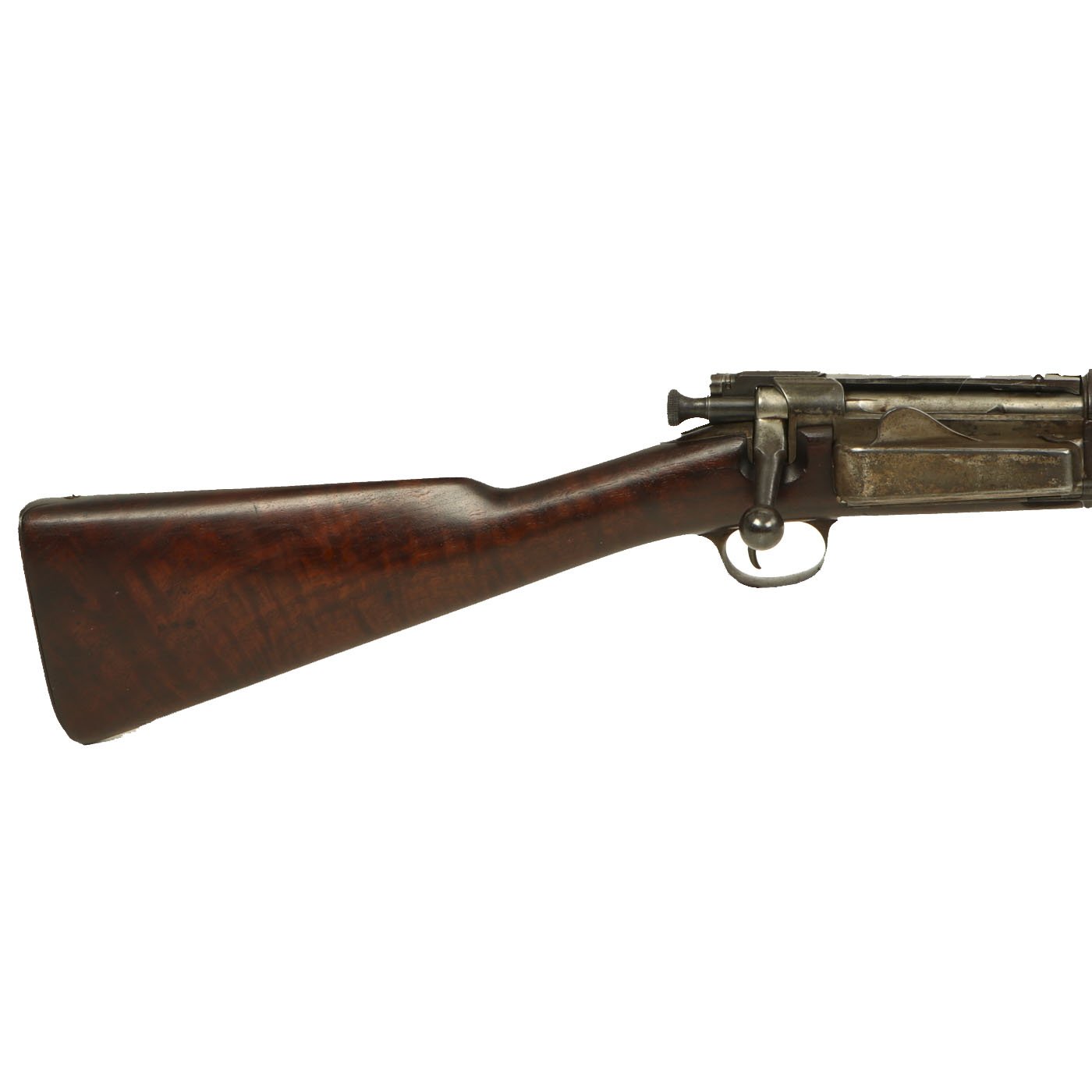 Original Item: Only One Available. This is great example of the very hard to find Springfield Model 1896 Krag–Jørgensen Carbine. Unlike most examples, this was not upgraded later to 1902 standards, and still is in the original configuration as issued. It is a rifle that saw service during the last days of mounted cavalry, and it really is exceptional, due to the highly figured walnut stock it has.