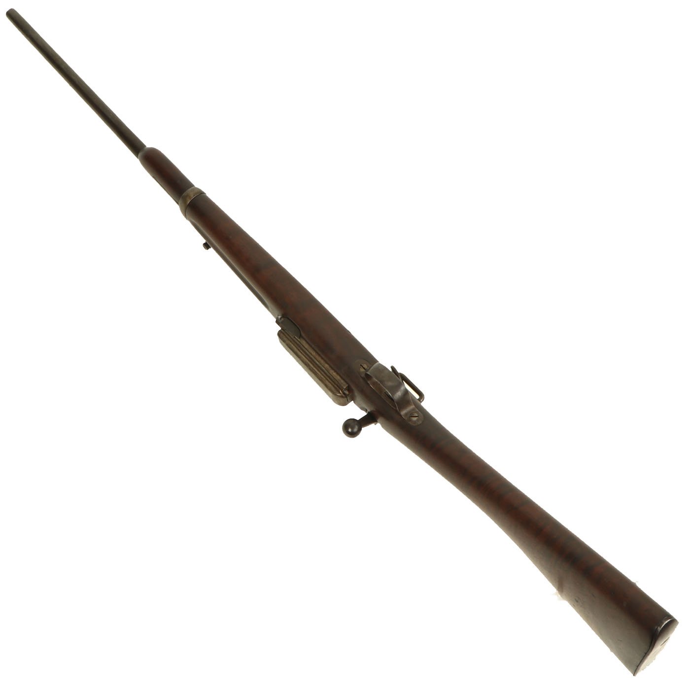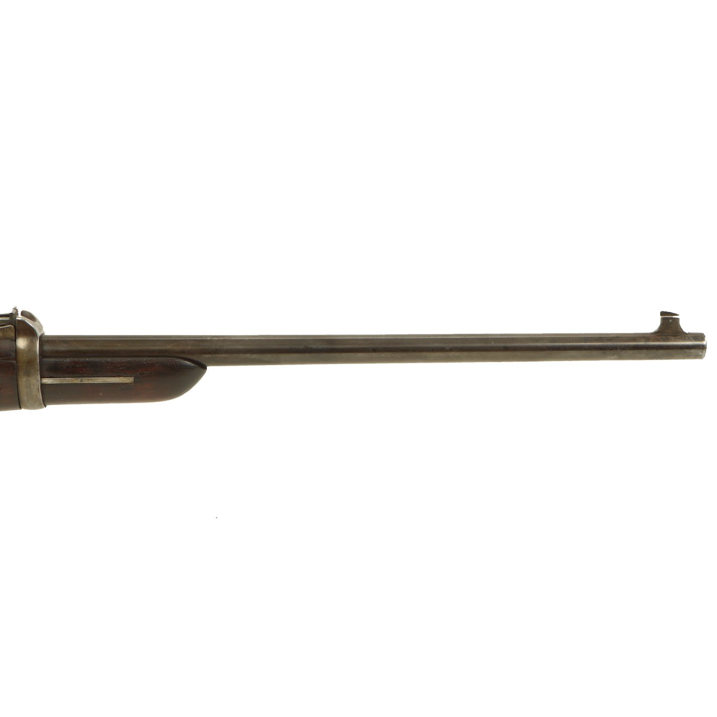 The carbine measures approximately 41 inches (1,042 mm) in overall length with a 22-inch (560 mm) barrel. The The Springfield Model 1892–99 Krag–Jørgensen rifle is a Norwegian-designed bolt-action rifle that was adopted in 1892 as the standard United States Army military longarm, chambered in U.S. caliber .30-40 Krag. All versions and variants were manufactured under license by the Springfield Armory between 1892 and 1903 and famously served as the longarm during the Spanish–American War. Although Krags were popular, unique and efficient, the side loading gate mechanism was slow and cumbersome to reload in combat compared to the clip loaded Spanish Mausers the Krag was up against.