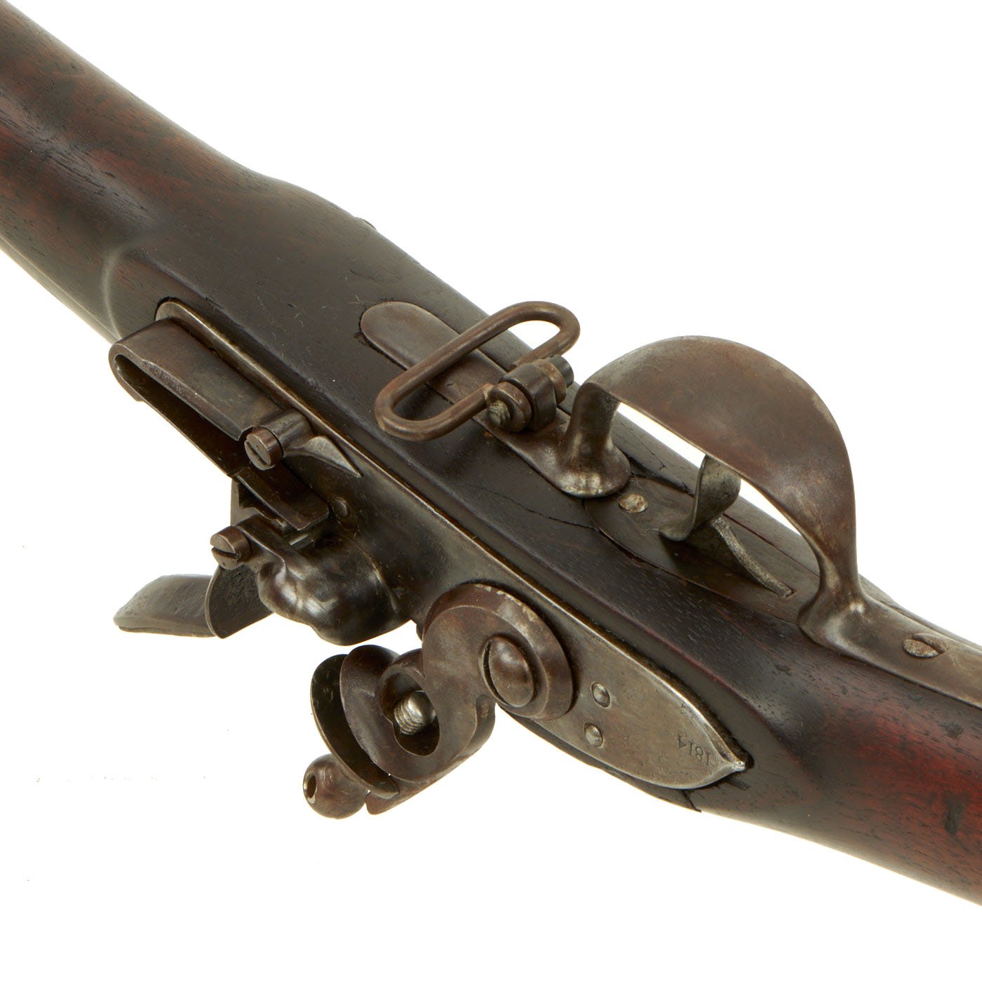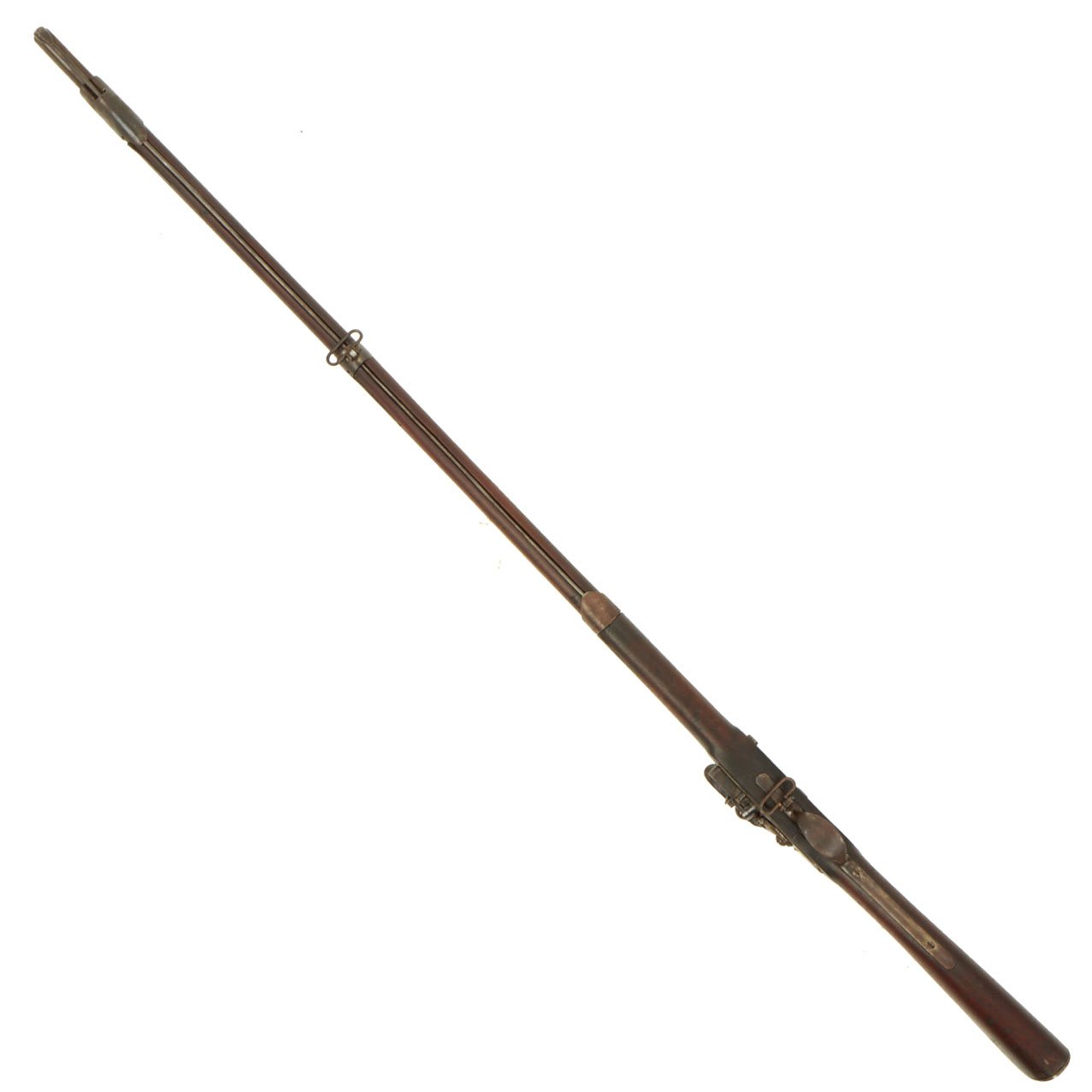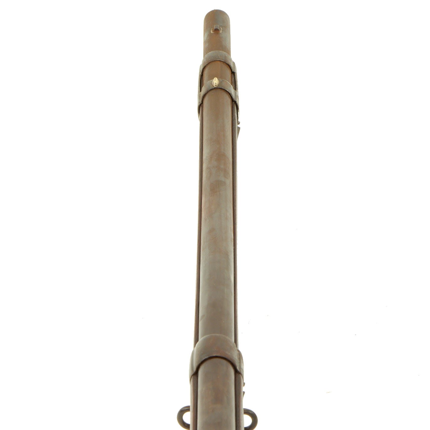 The musket measures 59 1/2 inches in overall length, with a barrel 44 1/2 inches long, and comes complete with the original ramrod. This is a bit longer than usually seen, however this early in production there was significant variance in the length and specifications. The bore is closer to .75" than to .69", but we do not know if this was originally made this way, or whether it was worn or bored out later.