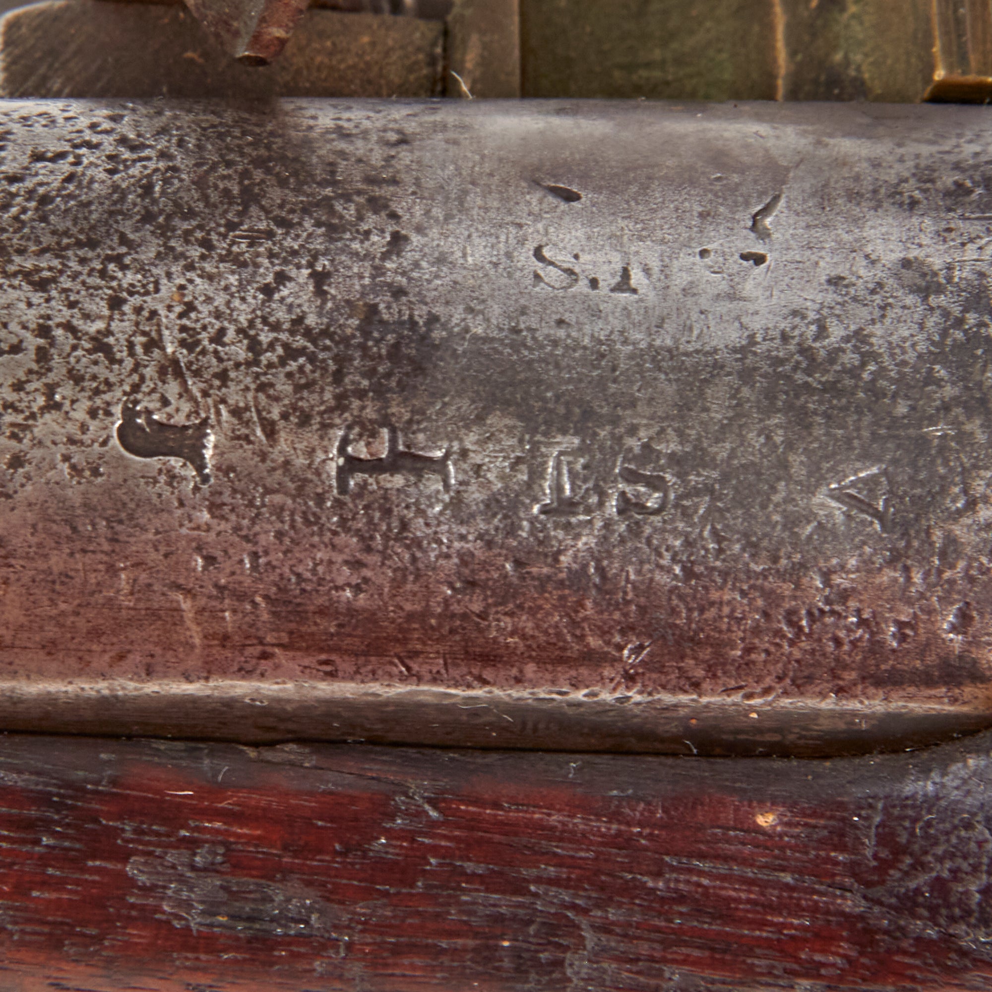 The left top of the barrel is marked with the standard Eagle's Head over P proofs, with a V next to the tang, which are the correct markings for this era. Between the P and V is an SJ stamping, for inspector Seth James, noted for inspecting Pomeroy Muskets during the 1818-1824 period. There is even a date still on the tang, which looks to have been slightly mis-struck, but we can see that it is definitely an 1820 date stamp.