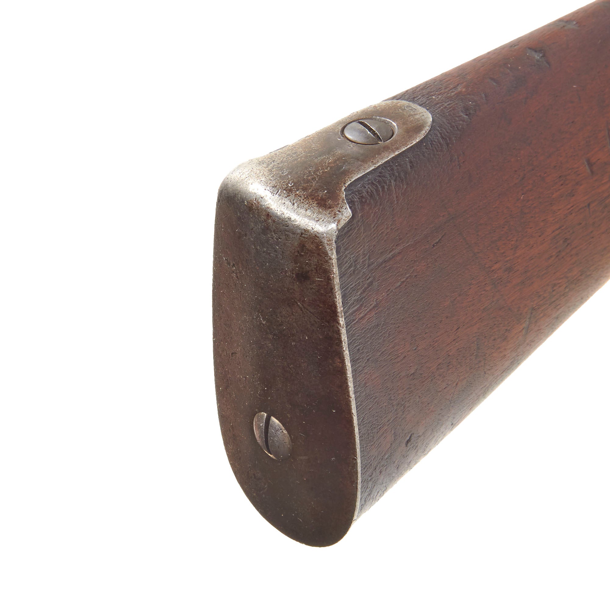 This example however avoided such treatment, and is still in the original flintlock configuration! It was contractor produced, and saw long service, with many cleanings, which have unfortunately removed most of the markings from the lock plate. The Federal Eagle and date markings are gone, and all that remains of the maker mark is L. P[OMEROY], however this is enough to definitively identify it. This is one of many Model 1816 muskets made by Lemuel Pomeroy & Company of Pittsfield, Massachusetts. Between 1817 to 1836, Pomeroy made some 21,600 muskets of Type 1 (Model 1816) and Type 3 (Model 1830) for the government. Many of these were specifically destined for the state of Virginia. Pomeroy was not contracted to make any Type 2 (Model 1822) muskets, and it was common that contractors made the same type until the end of a specific contract.