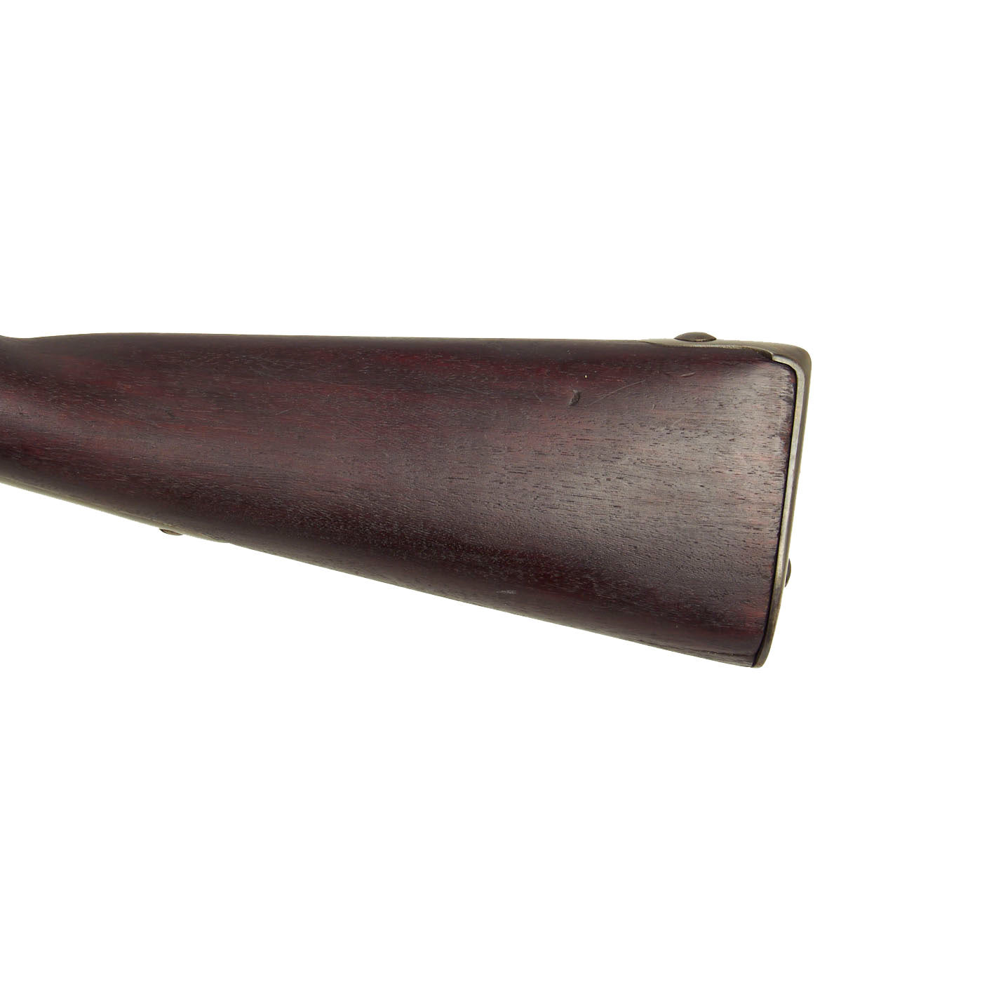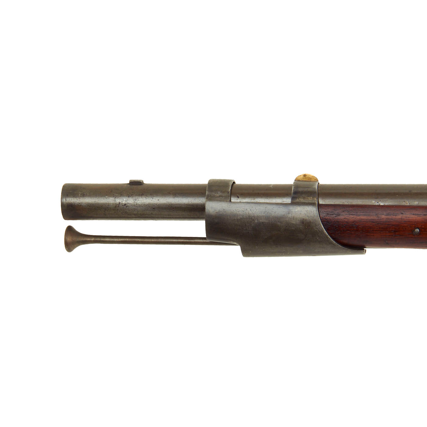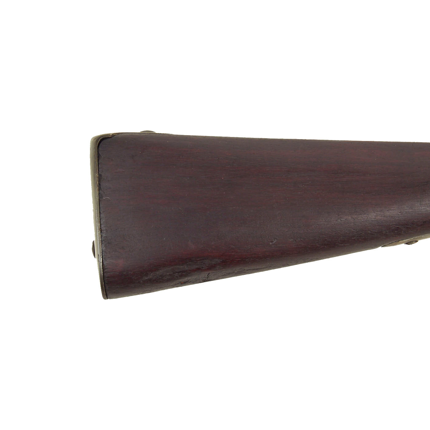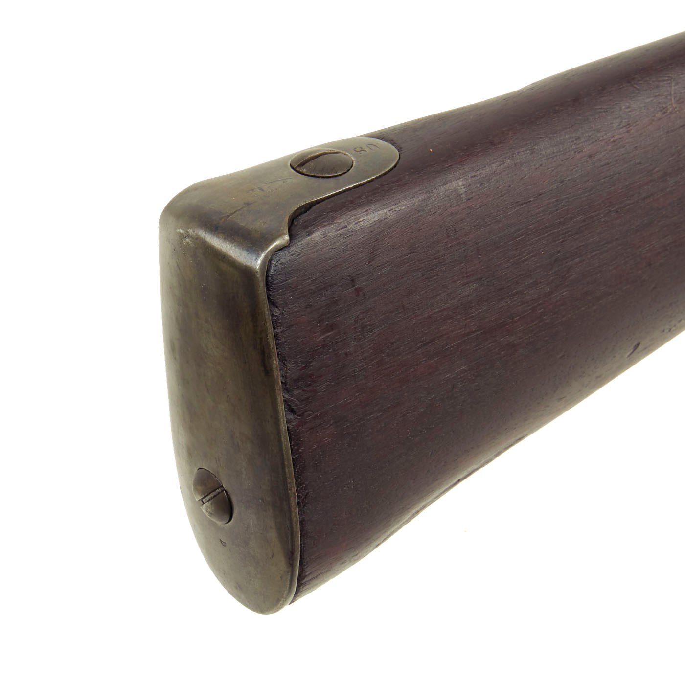 Overall this is a great example of a Model 1816 Long Musket, with a great look. The metalwork overall has a lovely gray patina of age, acquired from centuries of age and cleaning. The iron mounts are all present, and exactly correct. The lock functions correctly, holding at half cock and firing at full. It is however a bit stiff, and requires a strong trigger pull. It moves relatively slowly when firing, so the trigger must be held down to keep it from sticking at half cock. The iron butt plate is also stamped U.S. and the overall condition of the musket is just lovely.