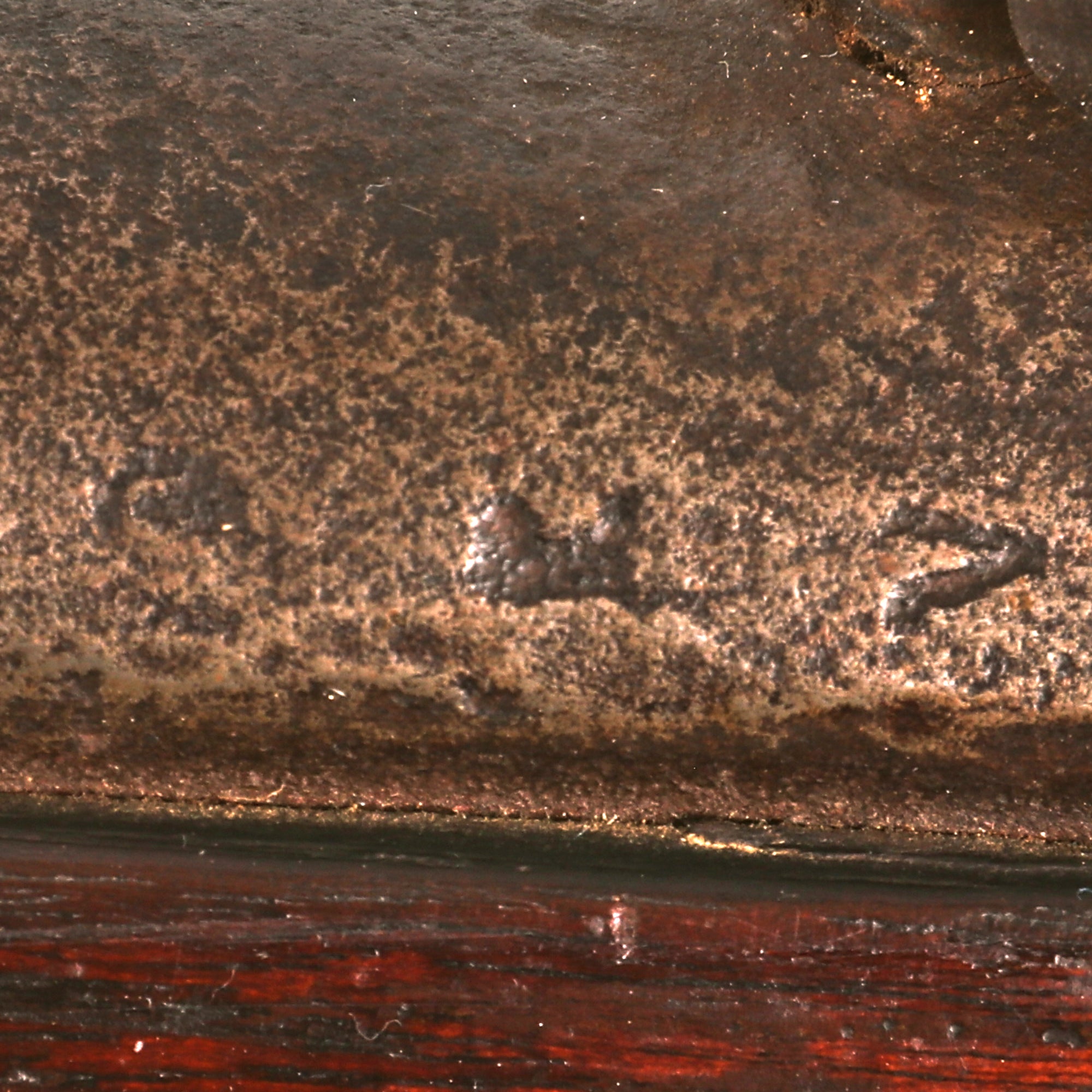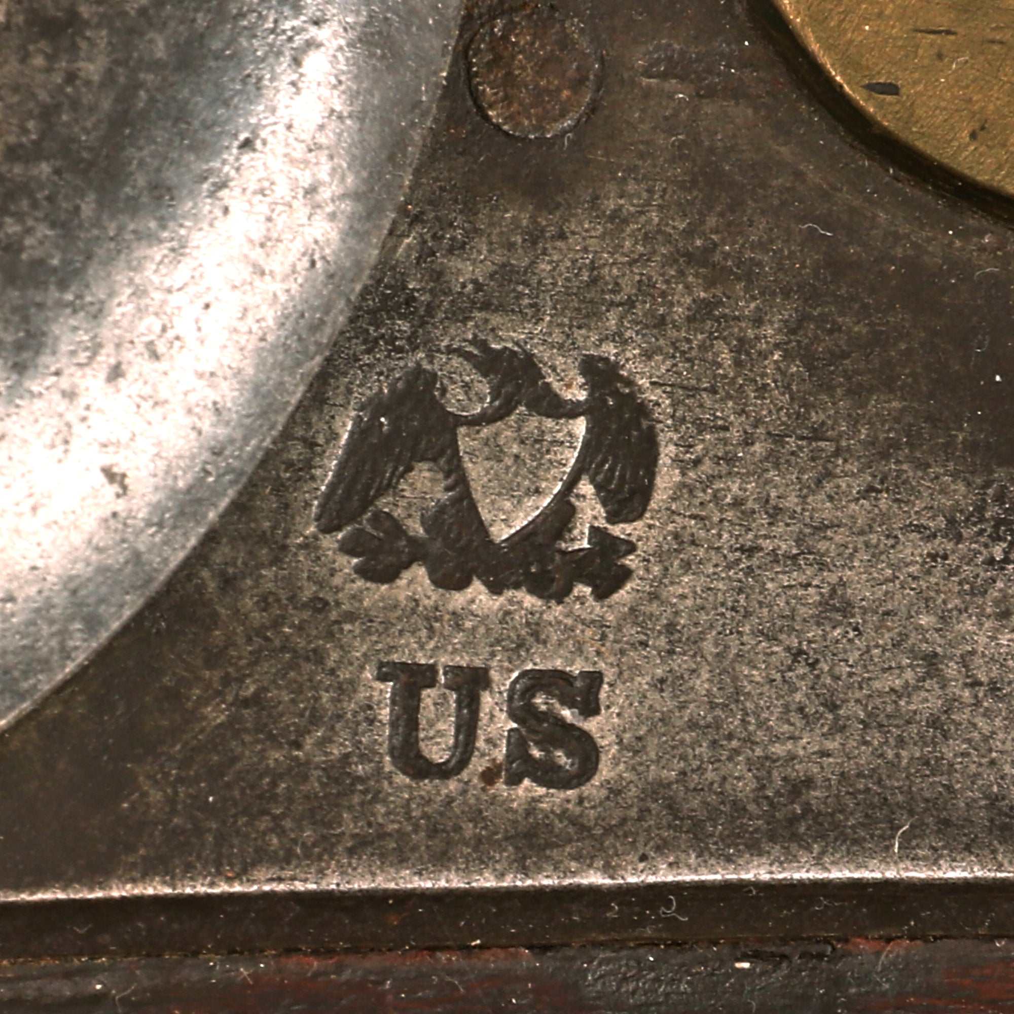 There is also a clear Federal Eagle over U.S. on the lock plate in front of the hammer, which is crisp on the very good condition lock plate. The 42" smooth bore barrel is faintly marked with V / P / Eagle's Head on the left top of the breech, the correct proof marks for this era. The lock plate and breech area have powder burn and past oxidation, which has made the markings faint. There are two faded oval inspection cartouches on the left side of the stock below the side plate, however they are unfortunately too worn to read.