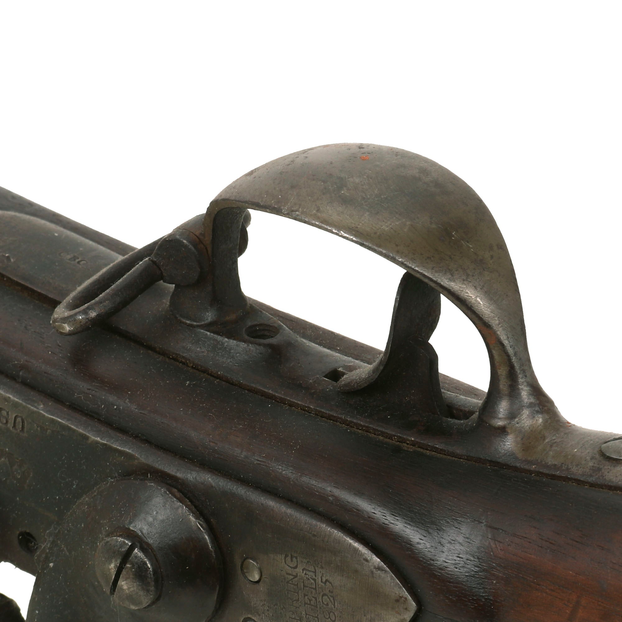 Original item: One Only. The U.S. Model 1822 Musket was a .69 caliber smoothbore flintlock, with a 42-inch barrel and an overall length of 58 inches. It replaced the previous model 1816 musket, and often is viewed as a further development of that design. One of the most noticeable differences in the Model 1822 is the attachment of the lower sling swivel. The forward part of the trigger bow was provided with an enlargement which was drilled to receive the sling swivel rivet. Previously, the sling swivel had been affixed to a stud in front of the trigger bow.