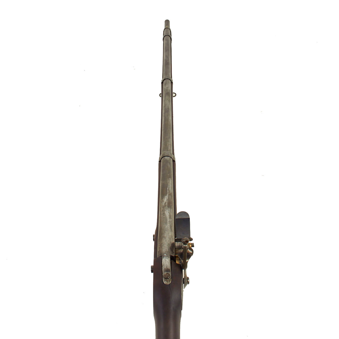 All iron mounts this .69 caliber musket is in very good lightly worn condition, with the original ramrod present, along with both sling swivels. There is definitely powder burn to the stock near the flash pan, so this is definitely a musket that saw use. We checked the lock, and it is fully functional, holding at half cock and firing at full. Please note that the mainspring is very strong, and it takes a strong hammer pull to get the lock to fire.