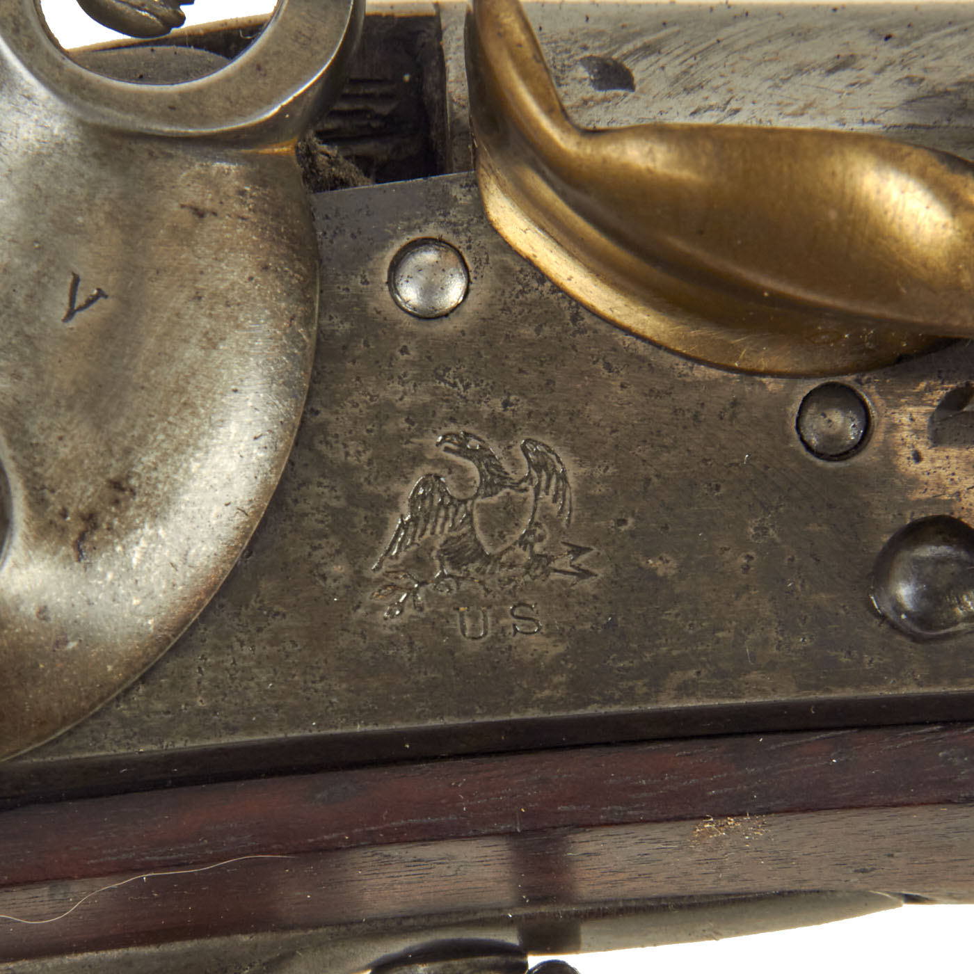 The lock is marked with the correct American Federal EAGLE / U.S. under of the hammer, and was produced at the United States Armory and Arsenal at Springfield itself, as indicated on the lock plate tail: