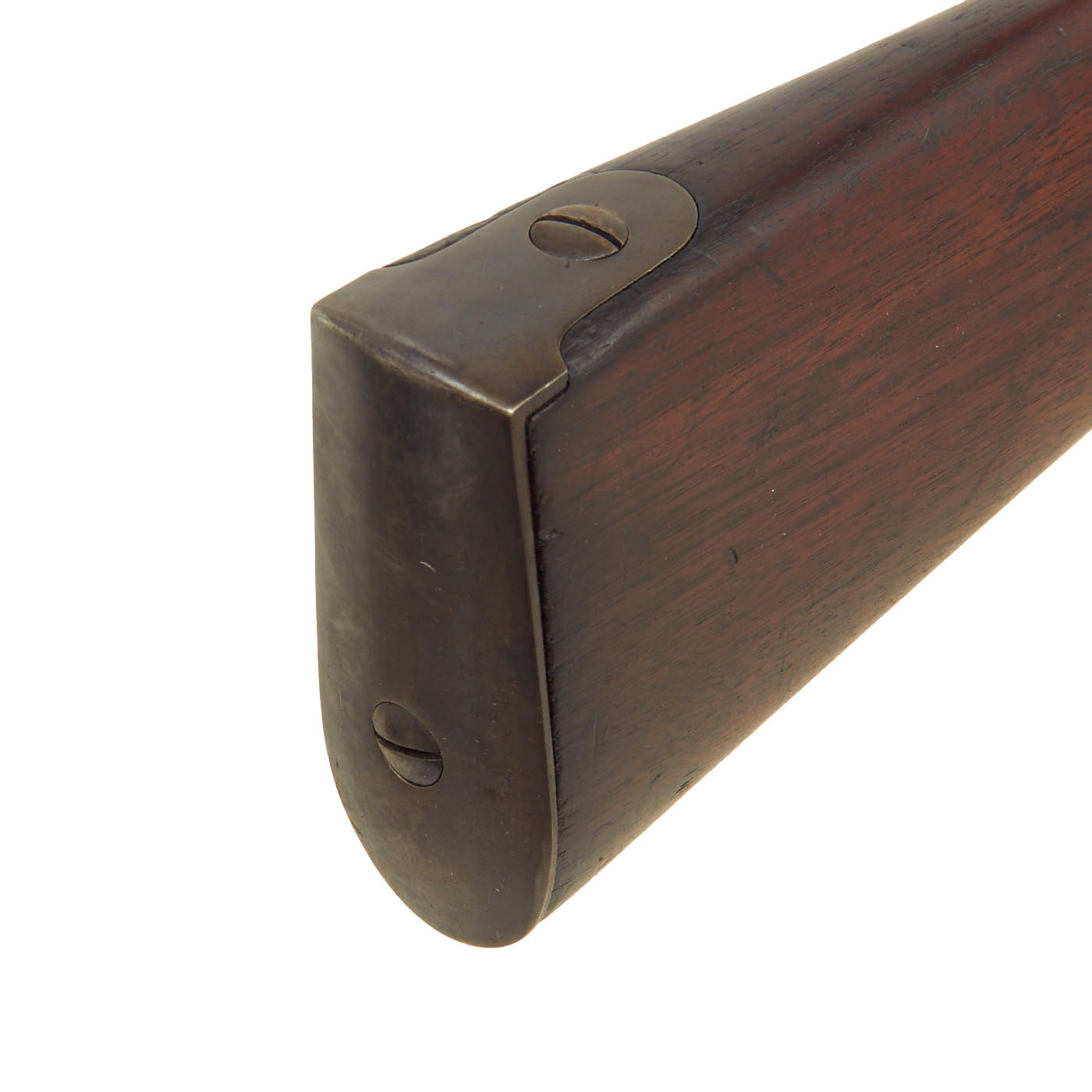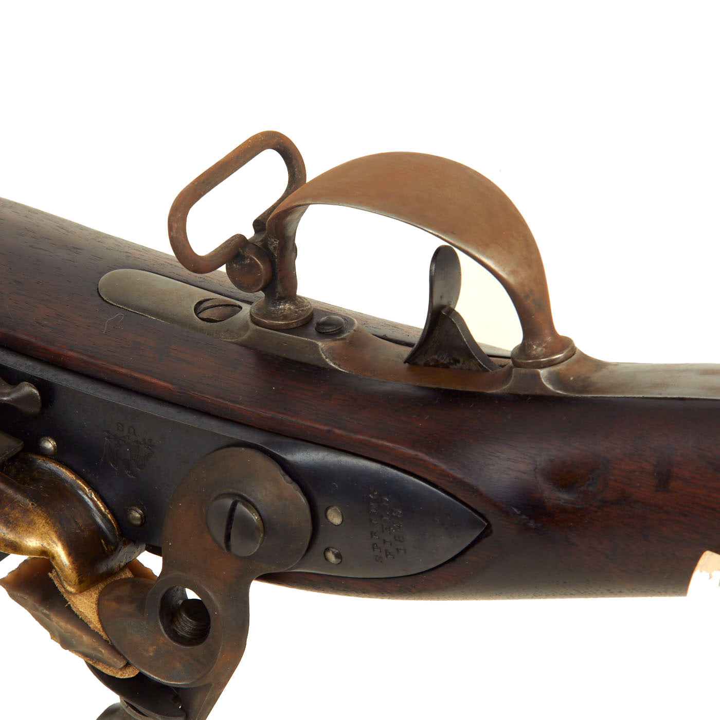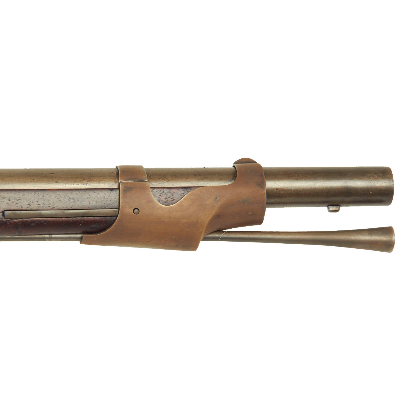 The Model 1840 was mainly an incremental improvement over the earlier model 1835. The main differences were a buttstock with a comb top, and also a thicker walled barrel. It was foreseen that eventually many of these muskets would be converted to Rifled Muskets, so the models 1840 and 1842 featured these barrels. The Model 1842 was the first U.S. musket to be produced with a percussion lock, though most of the Model 1840 flintlocks ended up being converted to percussion locks before reaching the field. This example however escaped conversion, and is a very late production example, made after the changes were officially in progress. Probably one of the last flintlock muskets ever produced at Springfield!