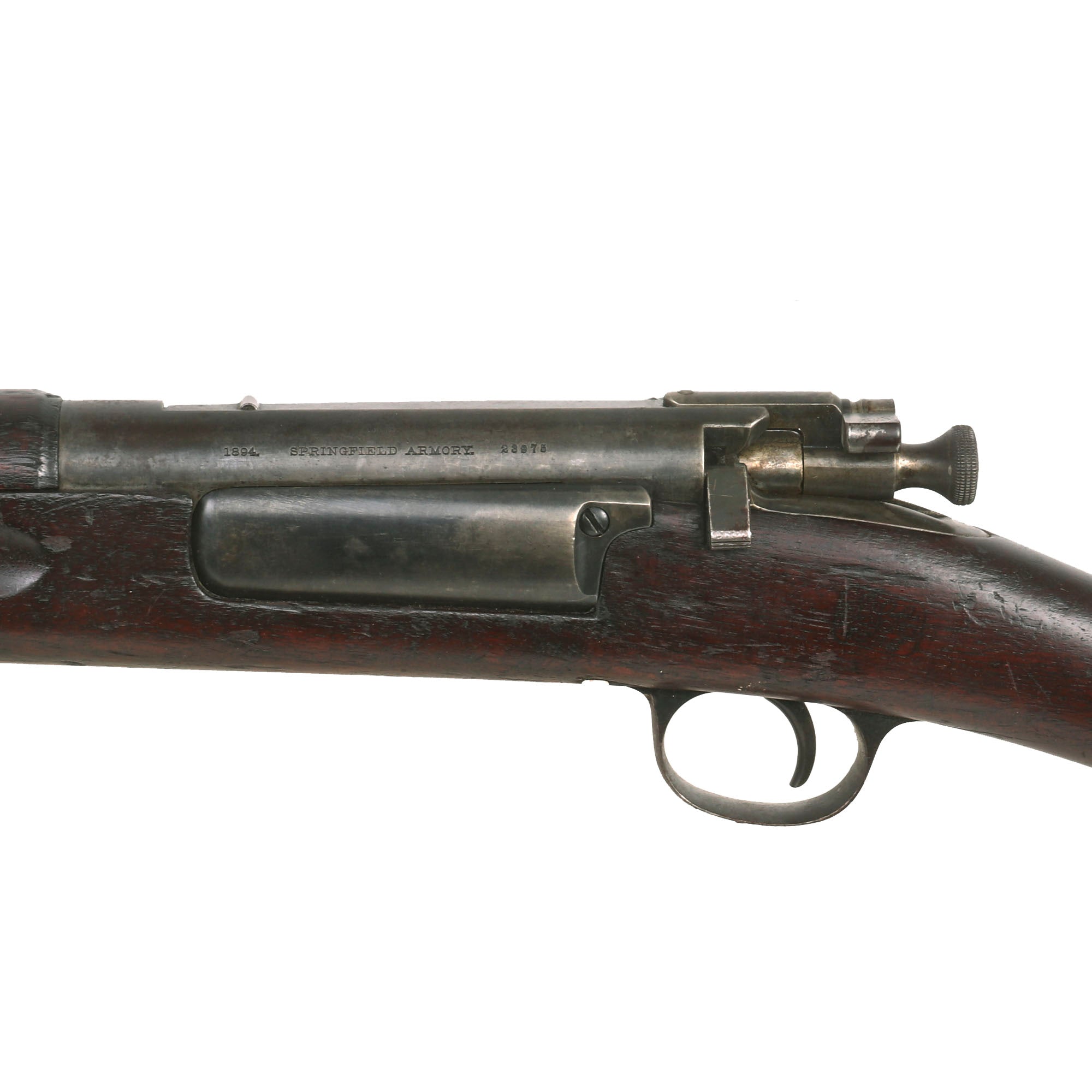 Original Item: Only One Available. This is a rare early production (1895) Krag M1892 Rifle. It measures was 49 inches (1,200 mm) in overall length weighing 9.3 pounds with a 30-inch (760 mm) barrel. M1892 Krag Rifles had a magazine cut off that operated in the up position. M1892s can also be identified by the single-piece cleaning rod stored under the barrel. Interestingly, because it took two years to retool for production, model 1892 Krags have receivers dated "1894." Most of the M1892 rifles were then later arsenal reconditioned to the Model 1896 configuration.