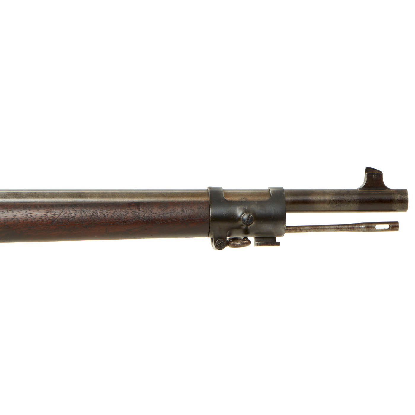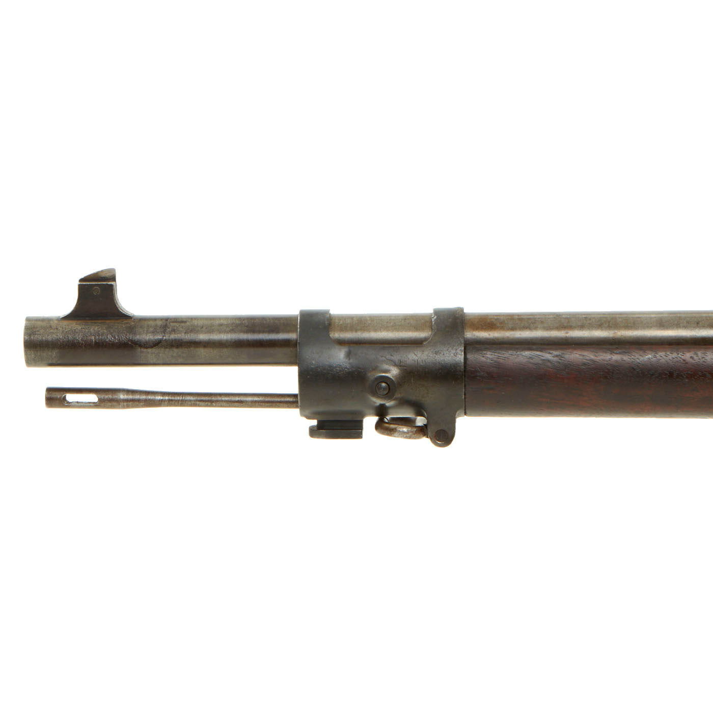 This example however still has the original stock configuration! It has a cleaning rod channel under the barrel, complete with the cleaning rod, though it is not the knurled type. We have never had one of these before! It also still has the original rear sight and butt plate. It has had some of the other updates made, so unfortunately it is not completely in the M1892 configuration, however those are exceedingly rare, and a choice example went for $46,000 at auction several years ago.