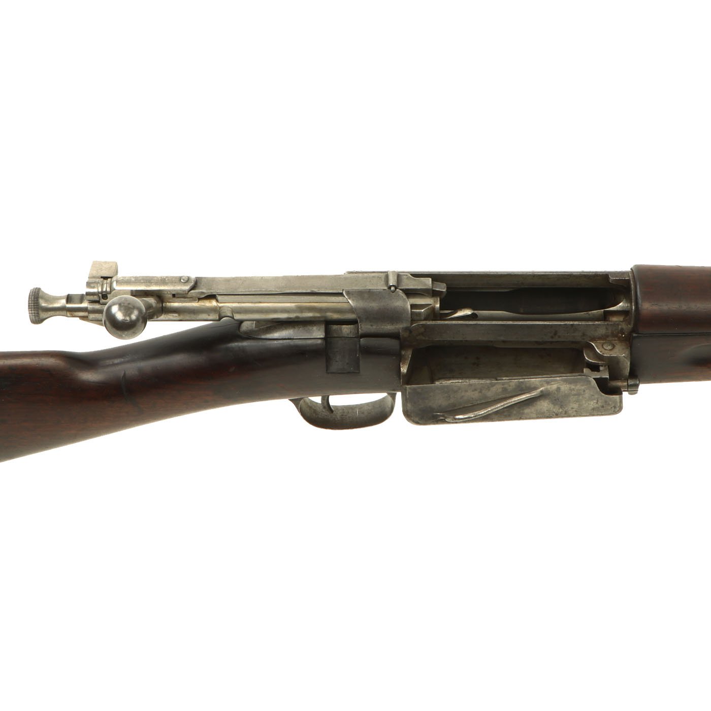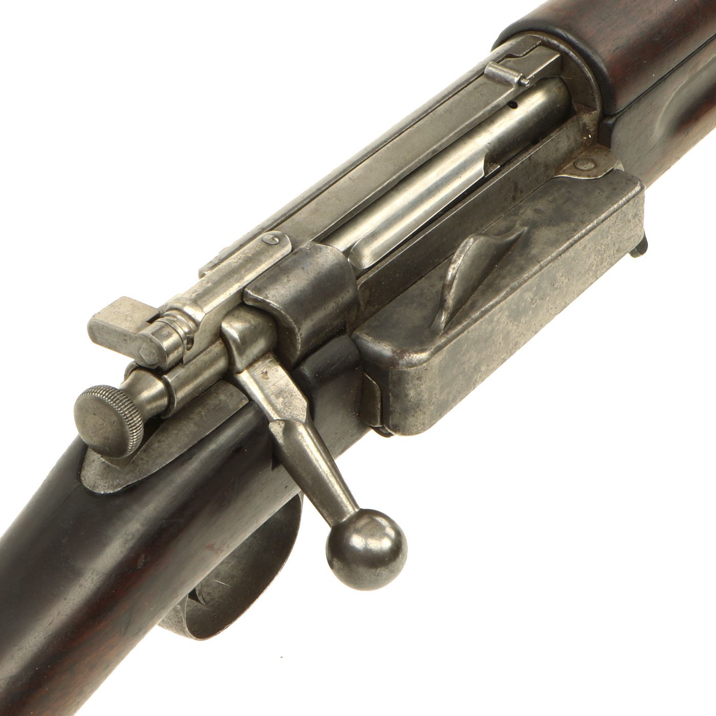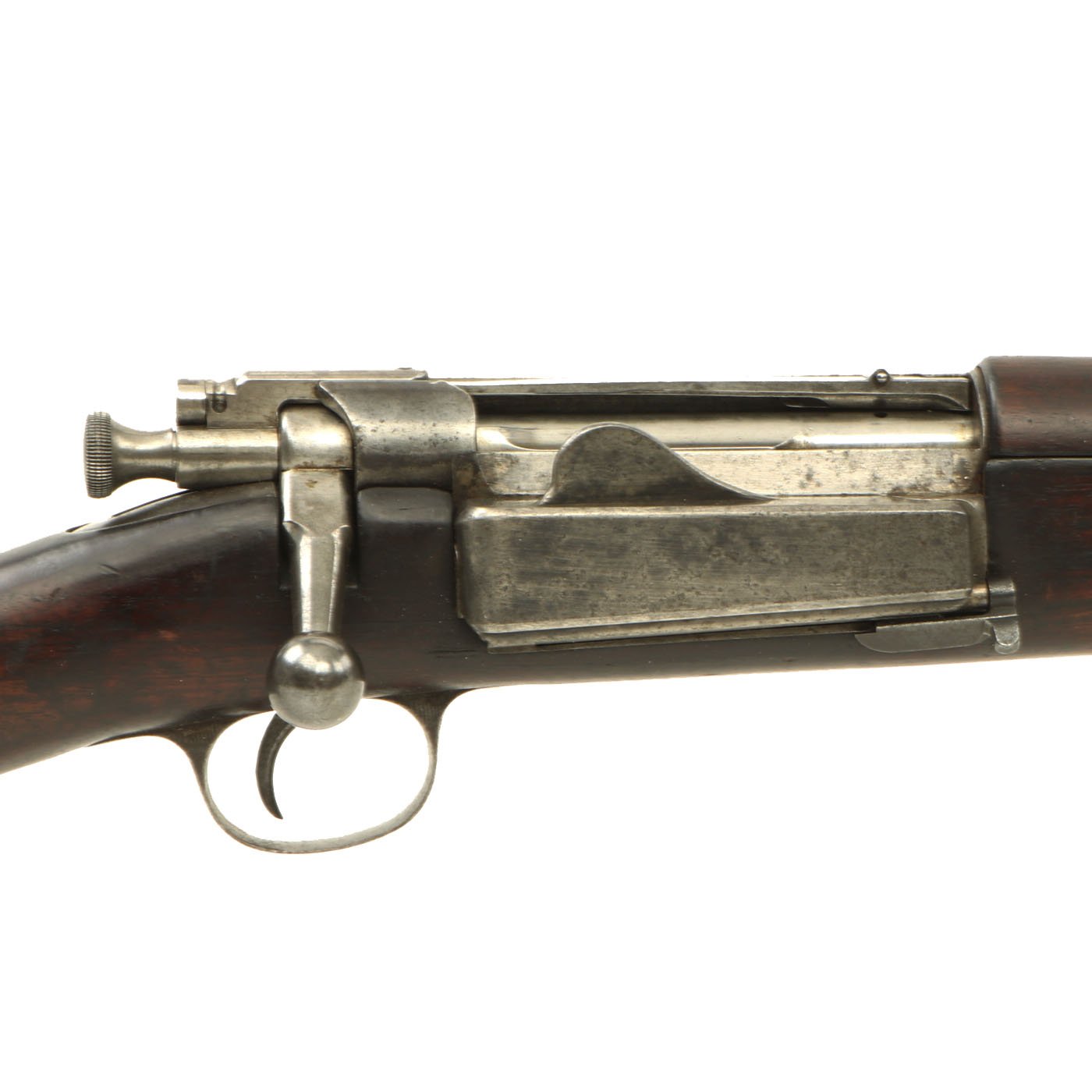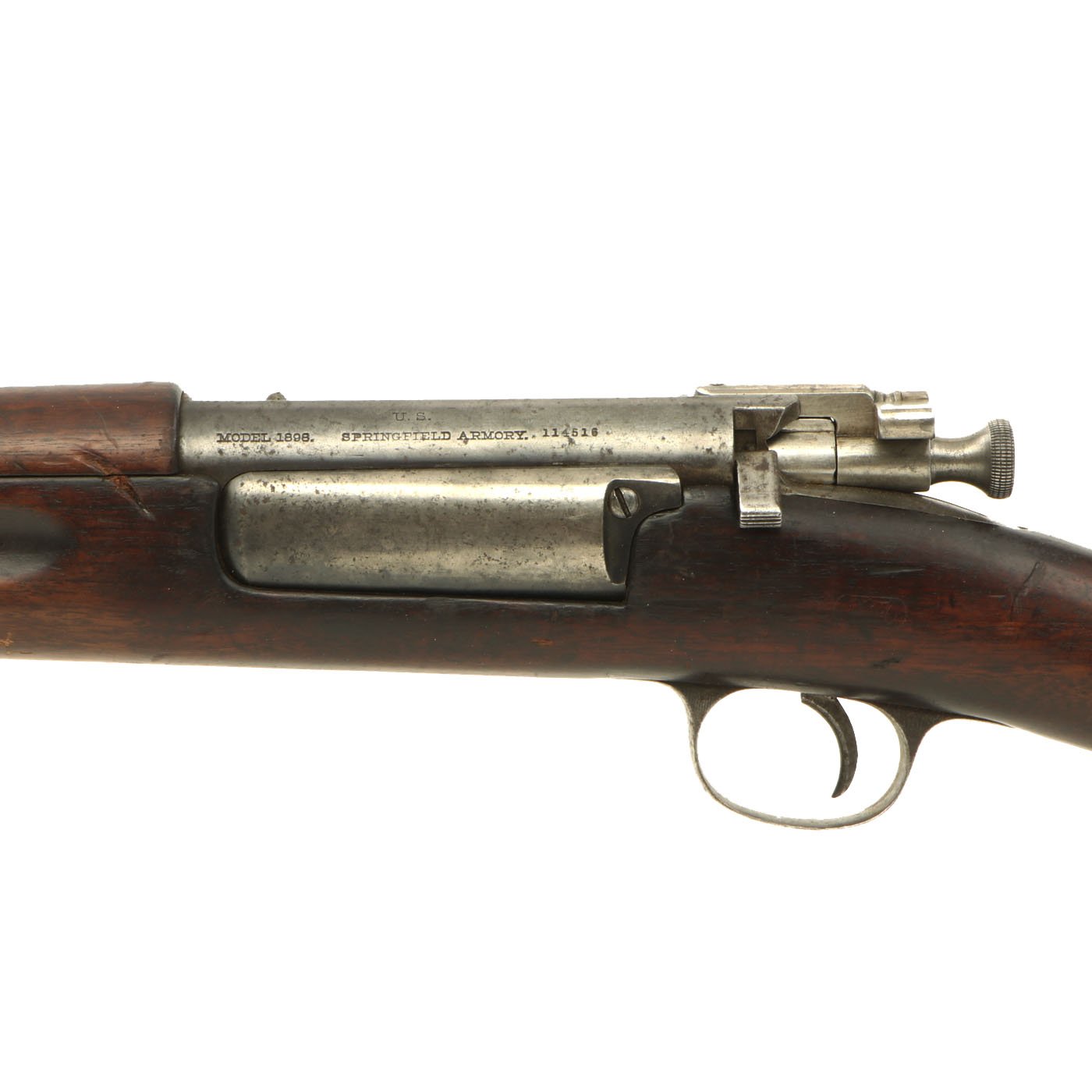 Original Item: Only One Available. This is a very nice very early-production (1898) Krag M1898 Rifle, measuring 49 inches (1,200 mm) in overall length and weighing 9.3 pounds, with a 30-inch (760 mm) barrel. The The Springfield Model 1892–99 Krag–Jørgensen rifle is a Norwegian-designed bolt-action rifle that was adopted in 1892 as the standard United States Army military longarm, chambered in U.S. caliber .30-40 Krag. All versions and variants were manufactured under license by the Springfield Armory between 1892 and 1903 and famously served as the longarm during the Spanish–American War. Although Krags were popular, unique and efficient, the side loading gate mechanism was slow and cumbersome to reload in combat compared to the clip loaded Spanish Mausers the Krag was up against.