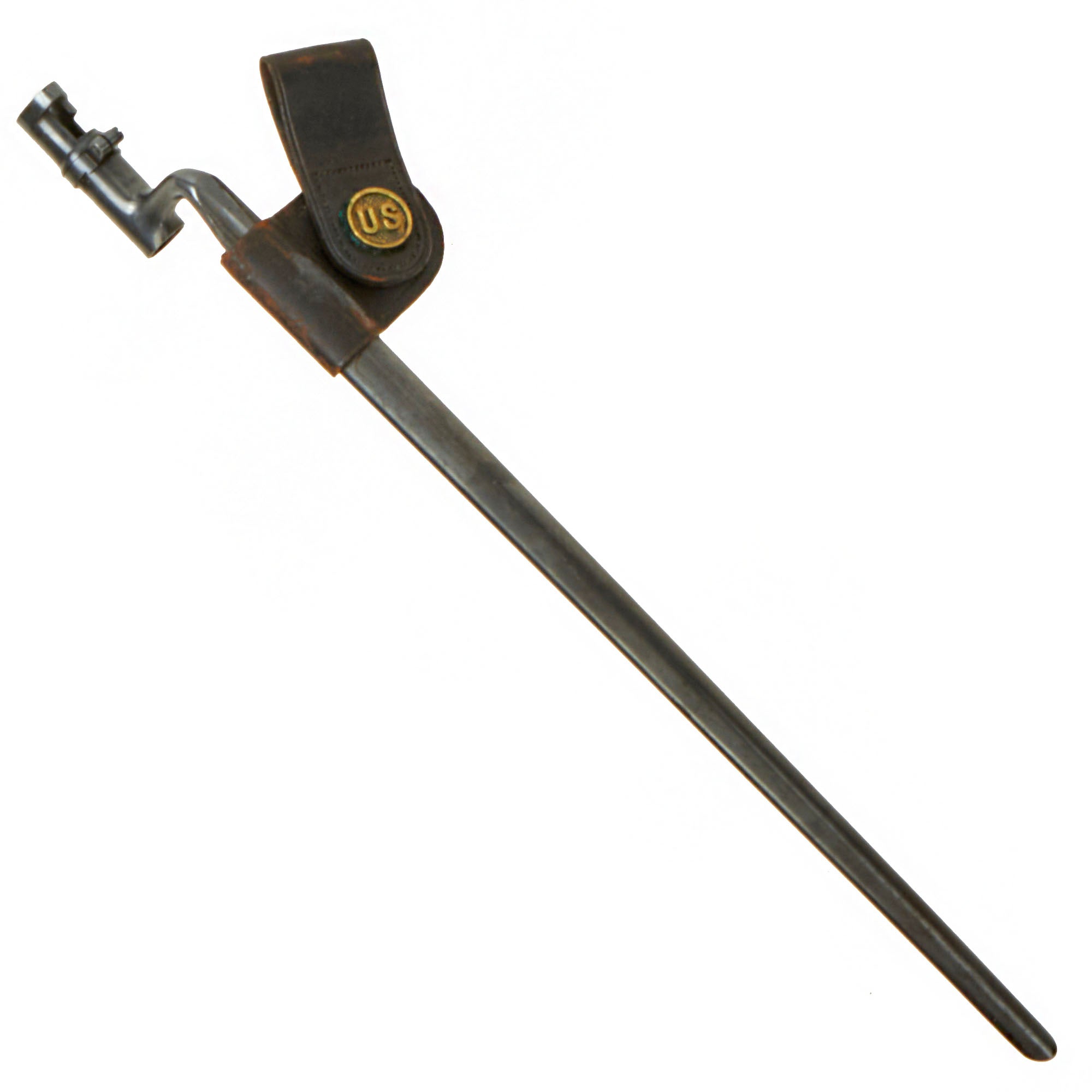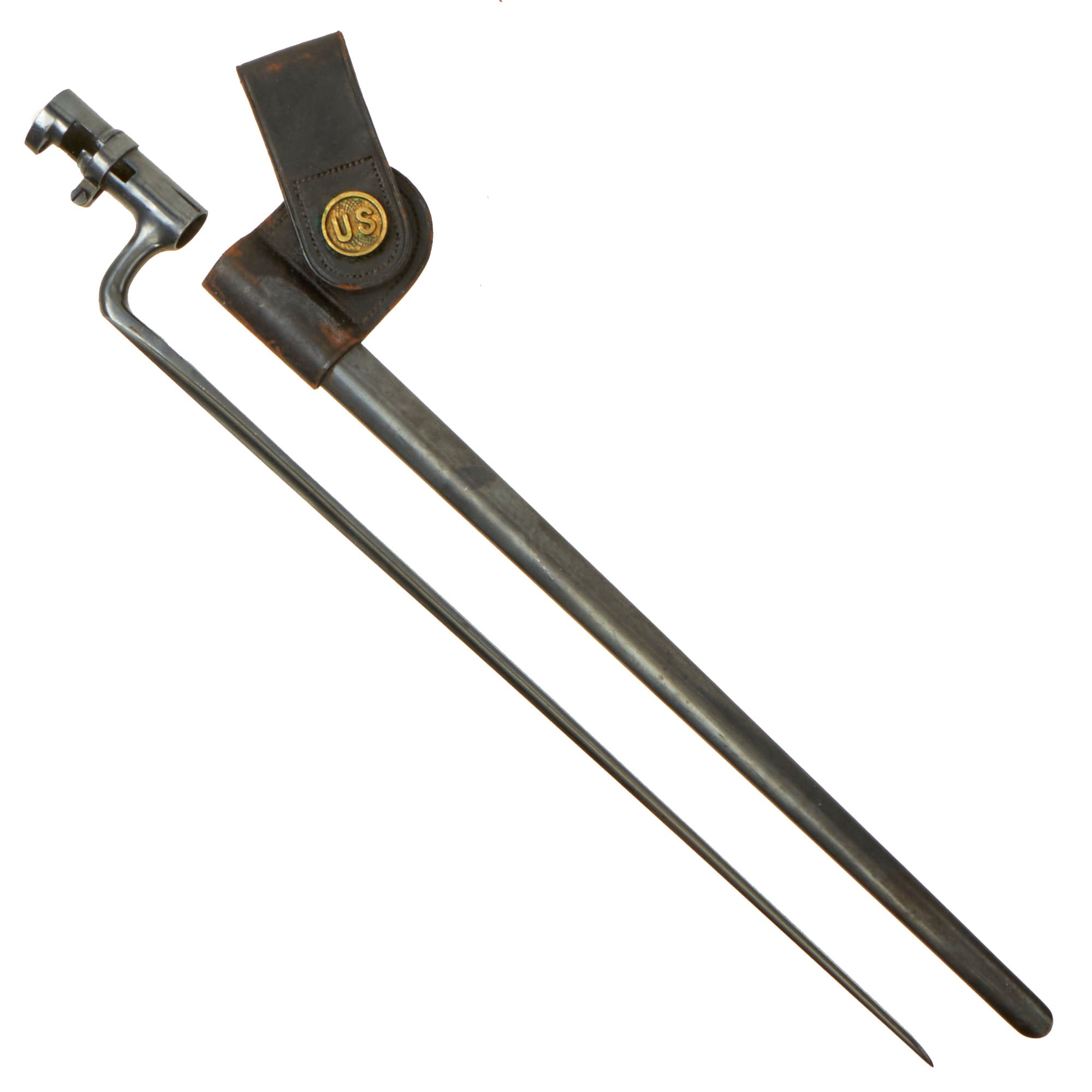 A very nice U.S. Trapdoor socket bayonet, complete with original scabbard. Ready to fit to your Springfield 1873 Trapdoor Rifle!