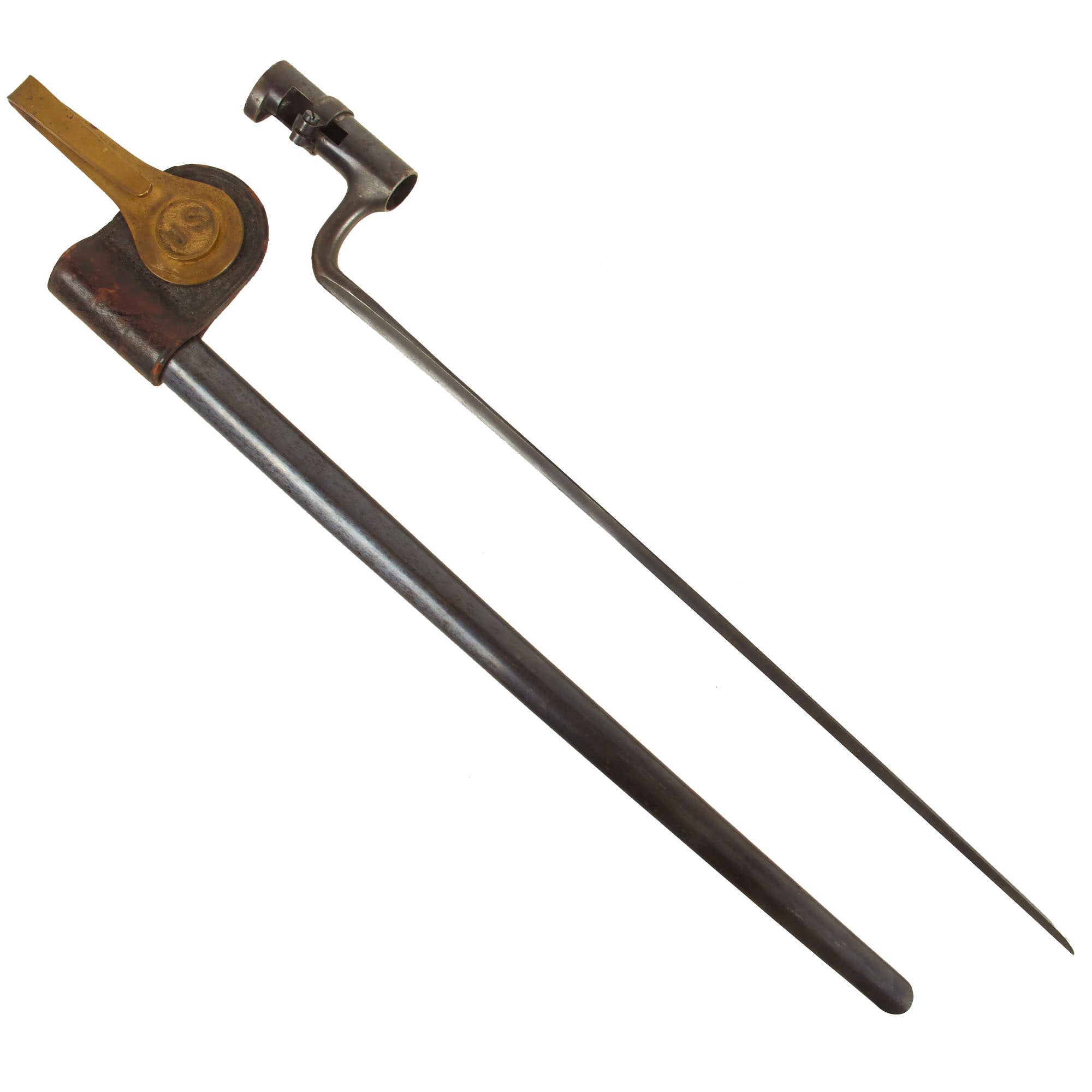 A very nice U.S. Trapdoor socket bayonet, complete with original scabbard. Ready to fit to your Springfield 1873 Trapdoor Rifle!