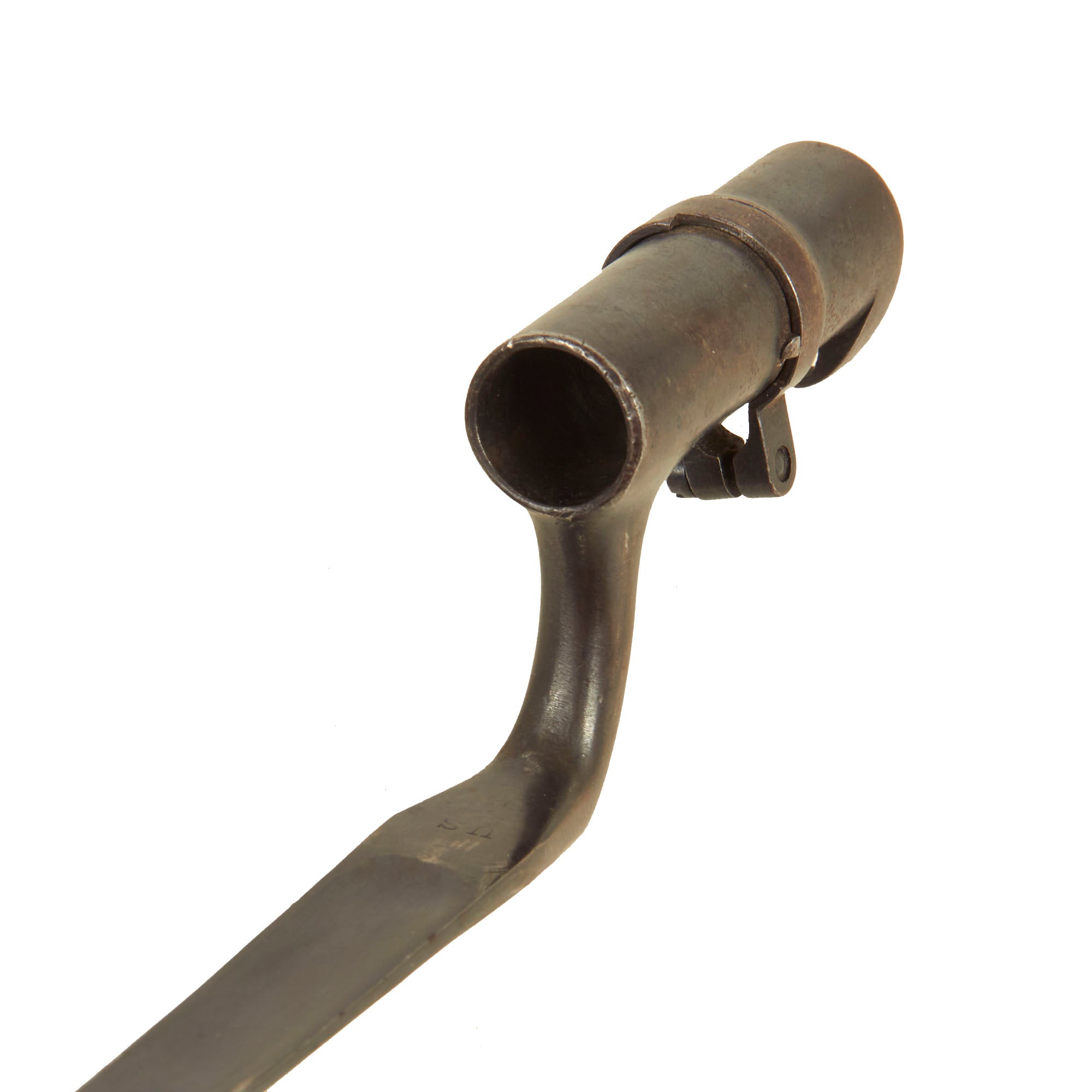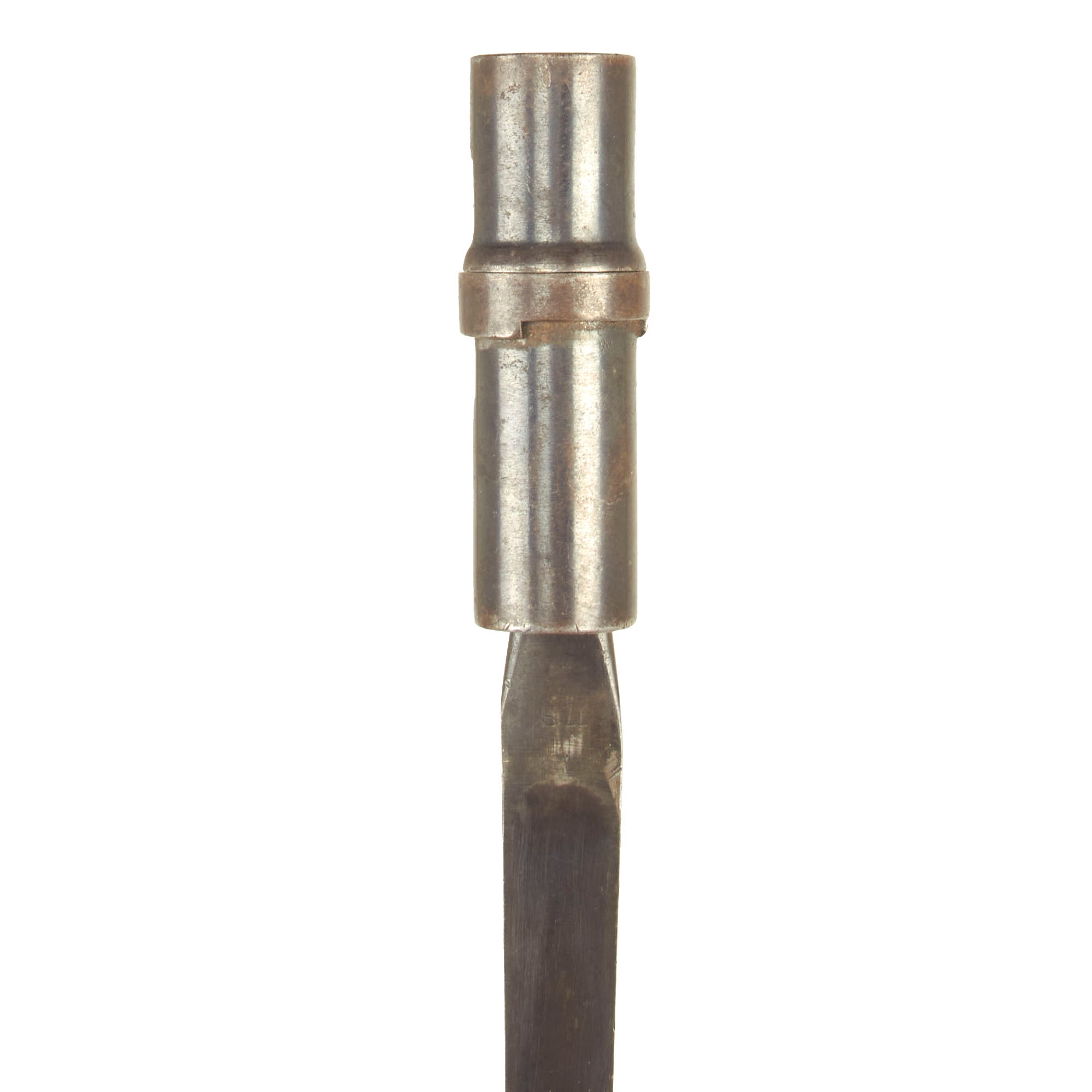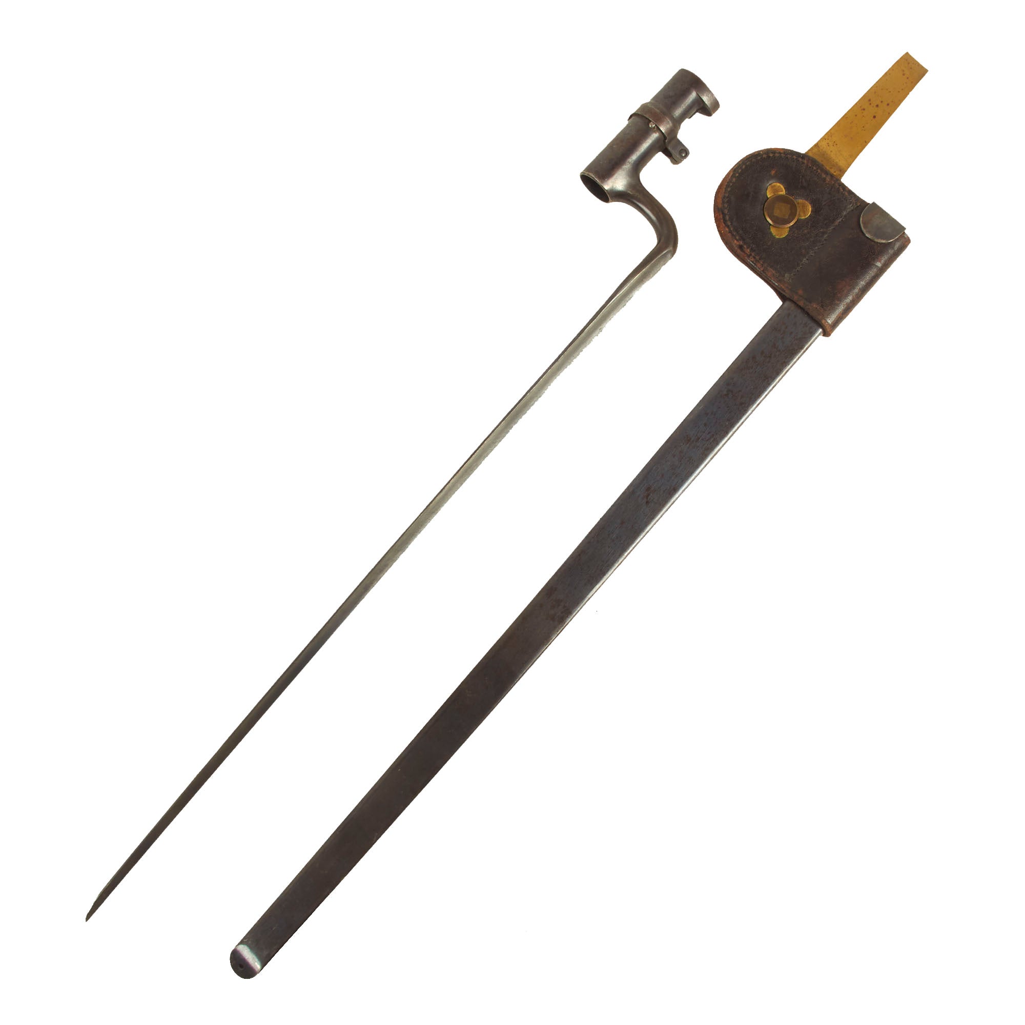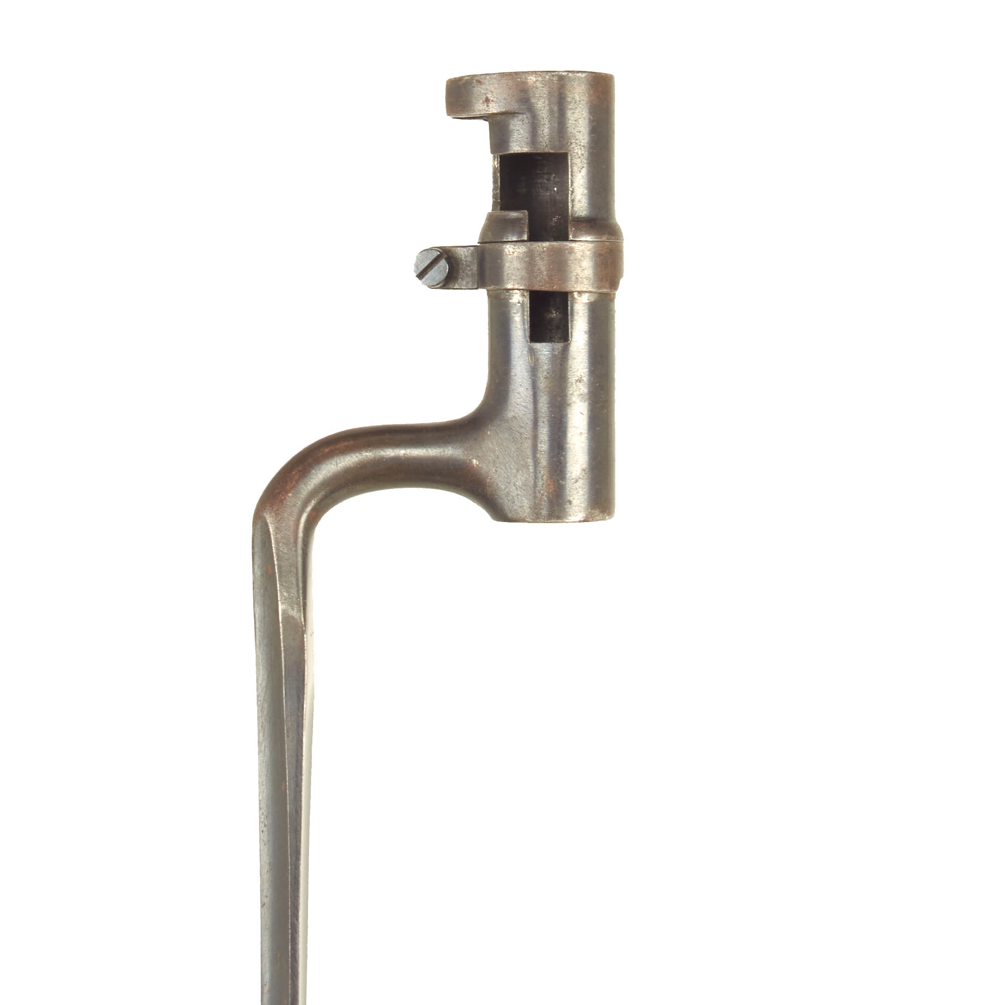 As the barrel was slightly less wide than the rifled muskets it replaced, the design of the current bayonet required alteration of the socket. Aside from this, the bayonet design was identical to the Rifled Musket version. It consists of a standard socket, which locks over the barrel and front sight, and has an attached 18 inch long triangular hollow-ground blade.