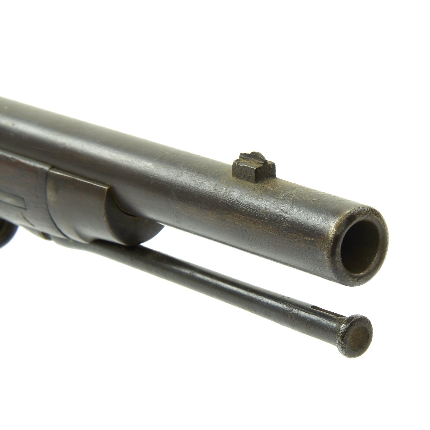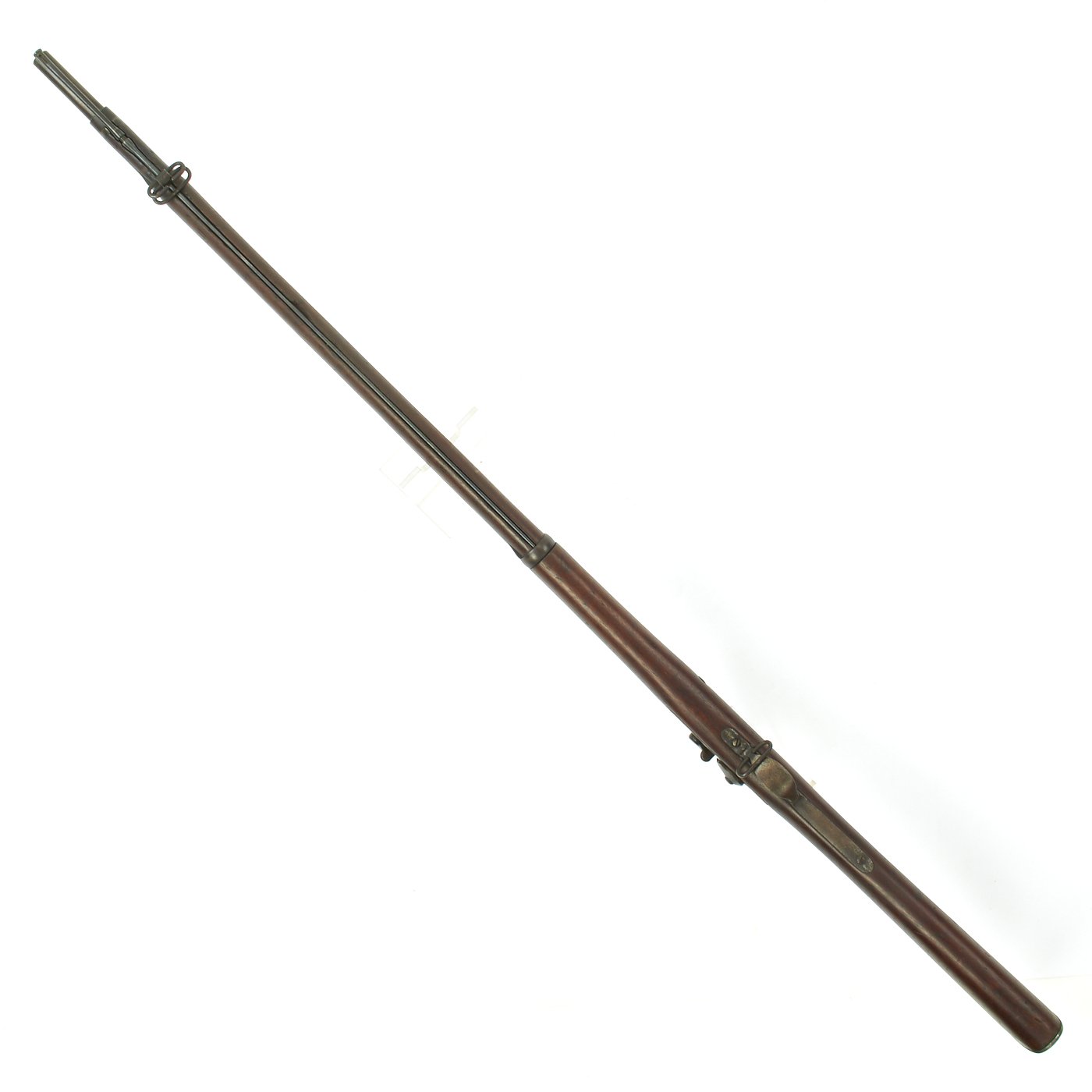 There are some small dents and scratches in the wood, but no structural issues. The stock has been sanded down, as the stock is below the level of the lock plate. Most of the stock proofs have all been removed due to this cleaning. The bore is in good condition, with clear lands and grooves, but also oxidation in areas, as well as wear.