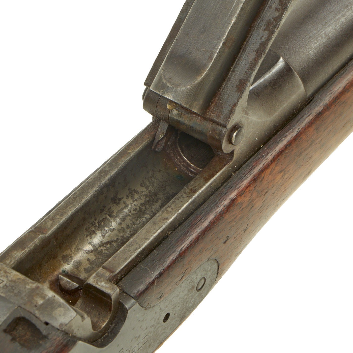 The bore is in good condition, with a partly bright finish, and clear lands and grooves. There are some spots of oxidation, as well as wear, so this is a rifle that definitely saw use during its service life. The ejector is present, and functions correctly, though we have not tested it with real brass. We did not notice any issues with the functioning of the Buffington rear sight.