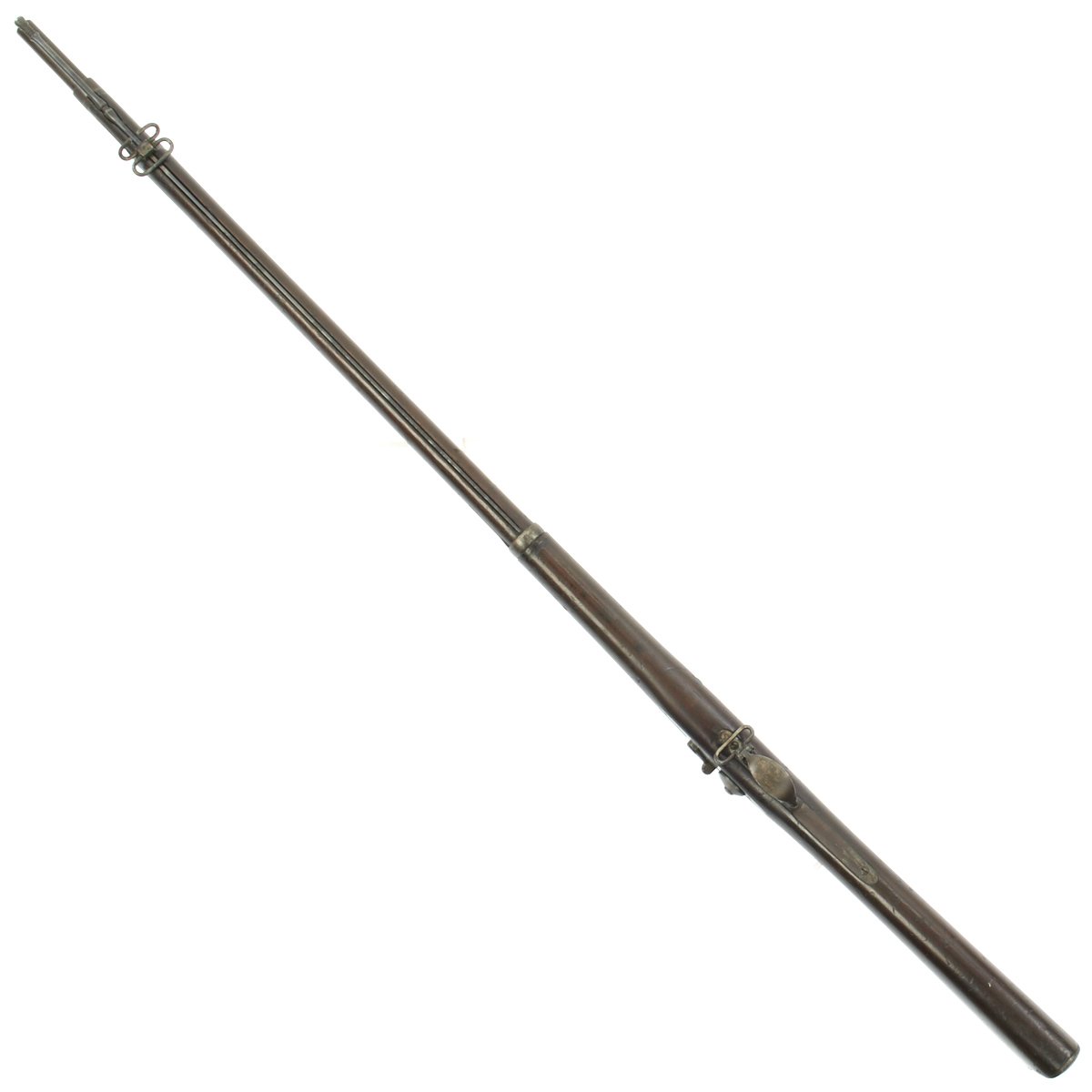 There are some small dents and scratches in the wood, as expected on a rifle this age, but the stock does not appear to have had any major repairs or damage. The stock has been worn down at bit, as the stock is only slightly proud over the lock plate in areas. However it has a beautiful red-brown color that only aged oiled walnut has. The right side of the butt stock is marked S.P.T.L., an interesting research opportunity.