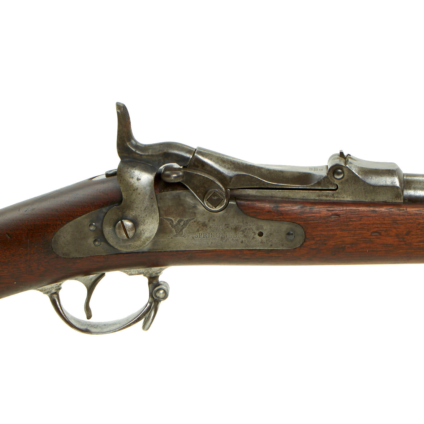 Original Item: Only One available. This is a nice example of the classic Springfield trapdoor rifle, the weapon used, in its carbine form, by the troopers of the 7th Cavalry that met their fate at the Battle of Little Big Horn in 1876. The breech block is marked:
