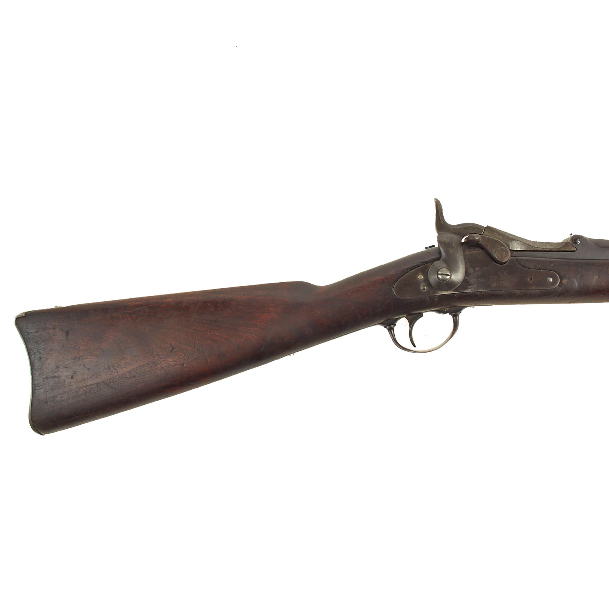 There is unfortunately no way to tell whether this rifle was returned to arsenal after production, or whether it was originally produced using the "salvaged" parts. However, considering that it still is completely in the M1879 configuration, we believe it was originally made with the early 1873 dated lock plate and possibly other salvaged parts. It shows no signs of having had any further updates.