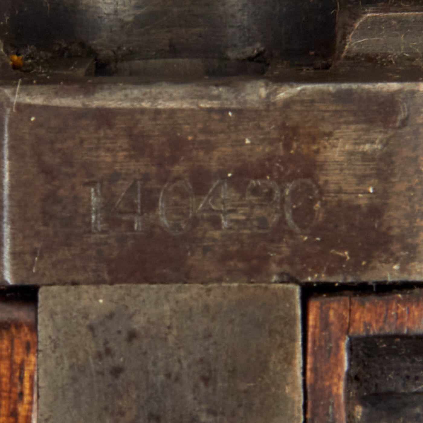 The bore is in very good condition, with a bright finish and clear lands and grooves. There definitely is some overall wear and past oxidation though, so this carbine definitely did see service, but was carefully cleaned and serviced after use. The breech block moves correctly, and the extractor is still present and functional, though we have not tested it with real brass. The saddle ring bar is still present, with the correct saddle ring present. It has the correct butt stock storage compartment for the cleaning rod, however it is unfortunately empty.