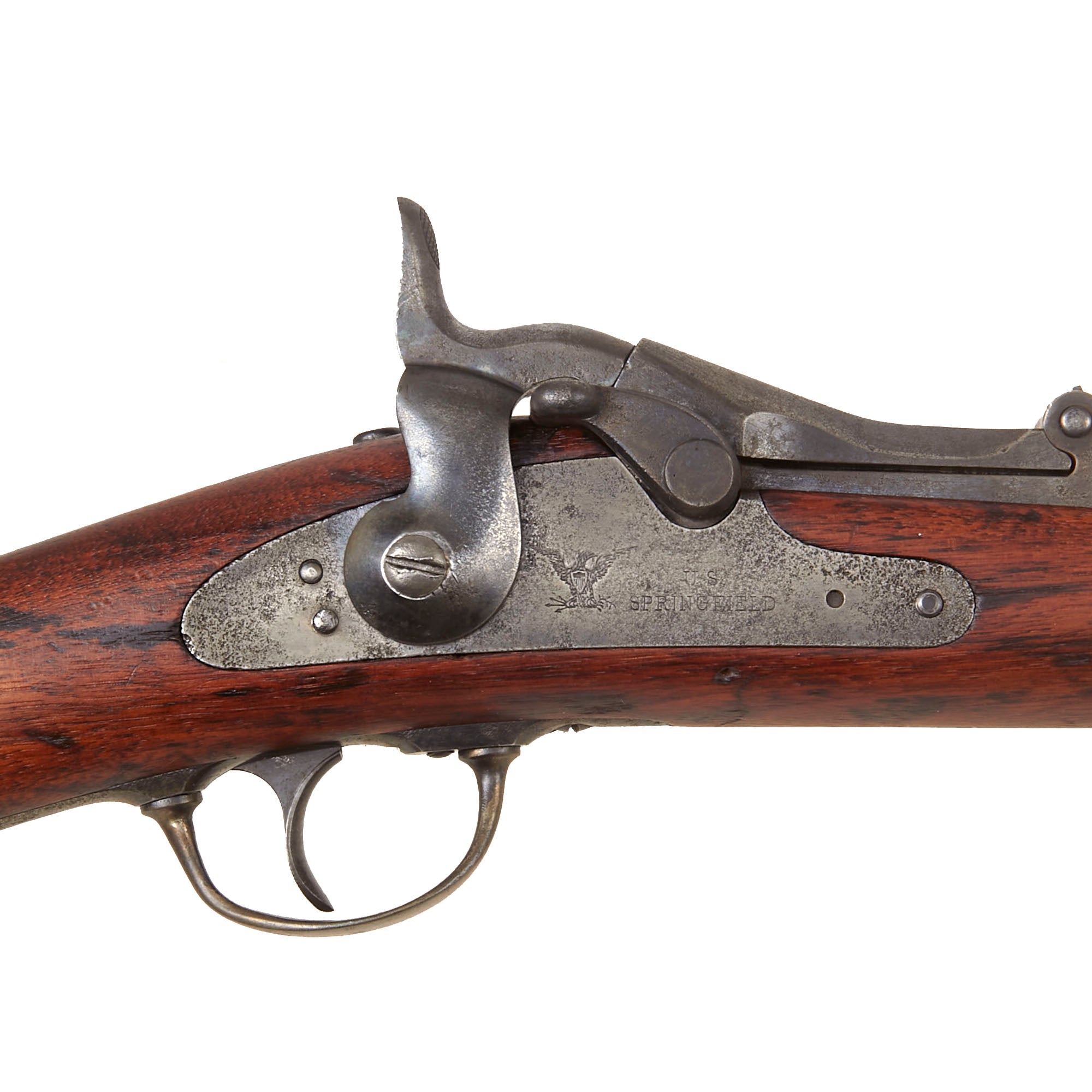 Original Item: Only One available. This is a very nice patinated example of the classic Springfield trapdoor Saddle Ring Carbine, the weapon used by the troopers of the 7th Cavalry that met their fate at the Battle of Little Big Horn in 1876. The breech block is marked: