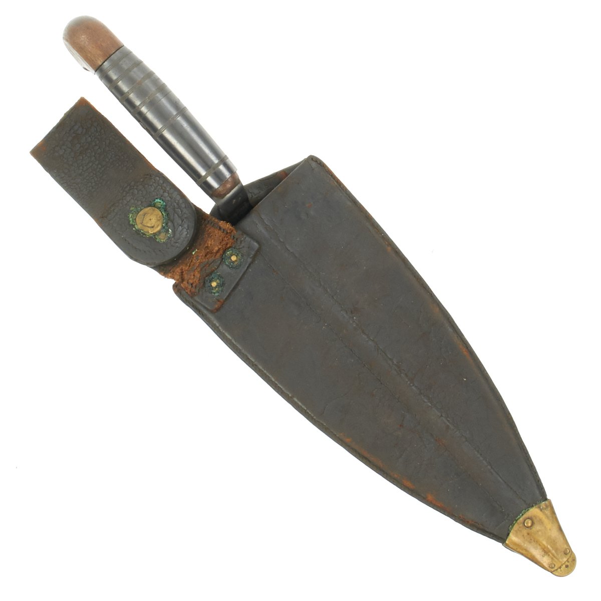 An ingenious bayonet in the shape of a gardening trowel, that when fitted to the muzzle of the rifle can double as an entrenching tool to dig in, or as a bayonet as the trowels edges are sharp, as is the point. The trowel bayonet was conceived to provide soldiers with a dual-purpose bayonet and entrenching tool. Following the U.S. Civil War, the conventional wisdom in the Army was that the bayonet was largely unnecessary and that soldiers should be individually-equipped to rapidly entrench without the need to bring entrenching tools forward by wagon.