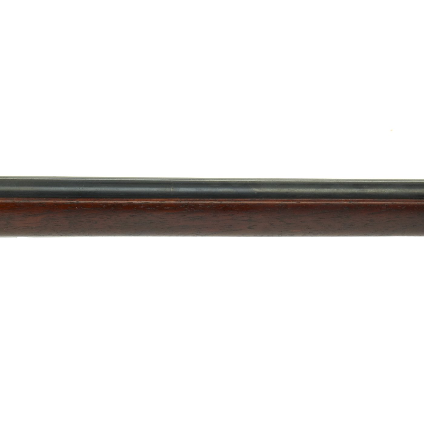 The rifle features an nice stock with some of the edges still mostly proud over the lock plate. It appears to have been sanded a bit, so the markings have been removed, however it has a great red/brown color, and is very attractive, with just a few dents and minor scratches.