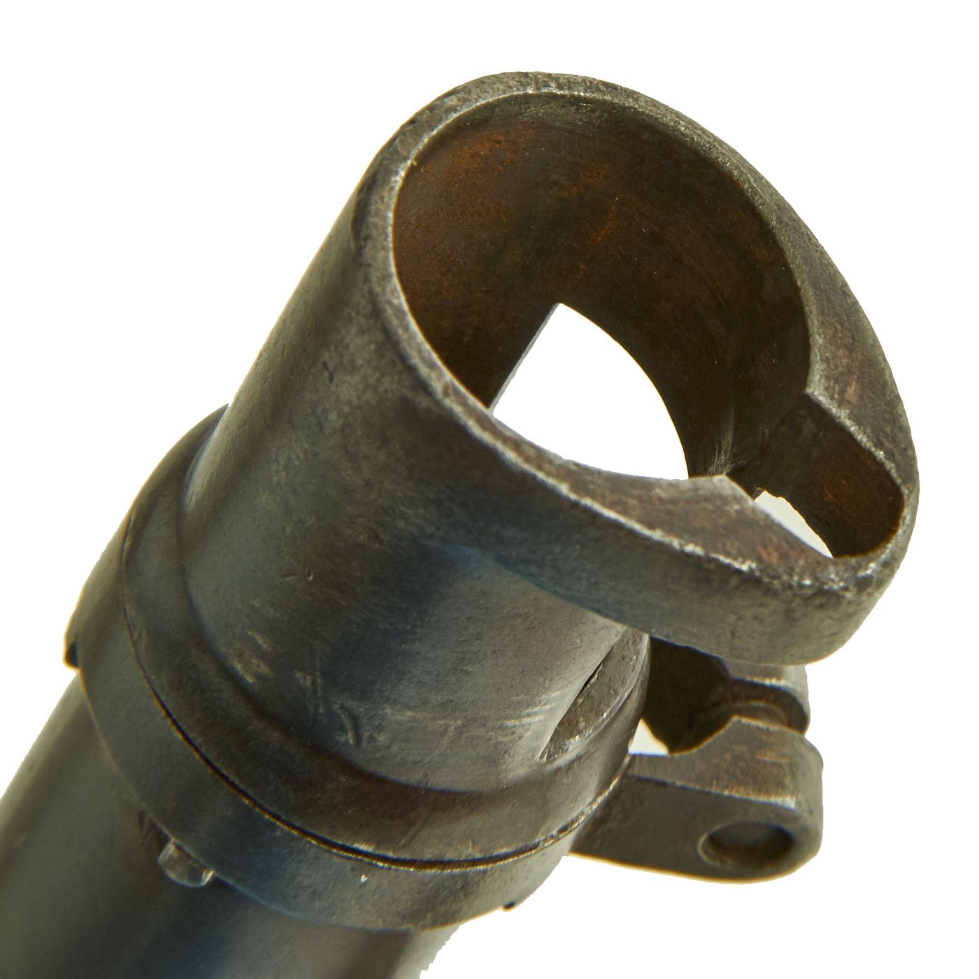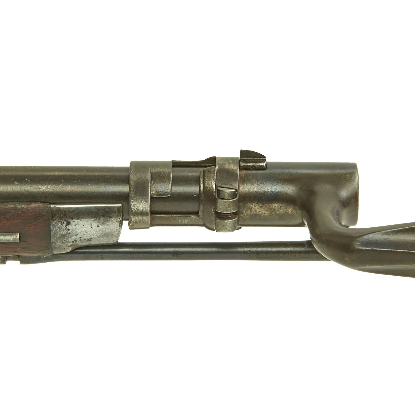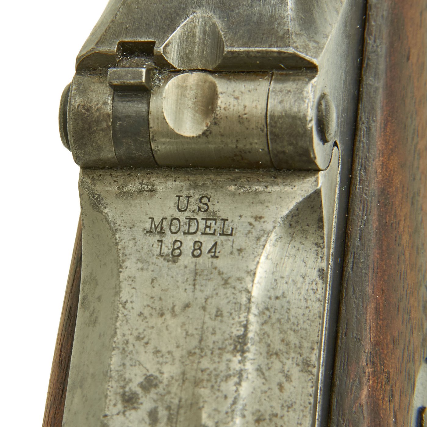 The original metal finish has faded to a dull gray patina, with some areas of peppering as well as bright steel. All proofs are still present, though some are a bit faded. The butt plate is marked U.S., and both barrel bands are U marked. The bore is in good condition, with clear lands and grooves, and a partly bright finish. There is wear and some areas of oxidation, so this rifle definitely see use.