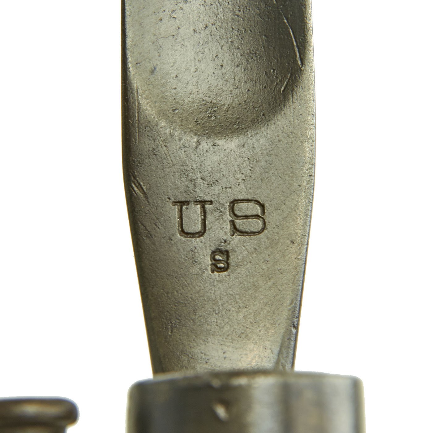 Included with this Cadet Rifle is a very nice Springfield Trapdoor rifle bayonet, in very good condition. It is marked correctly with U.S. / S on the ricasso, and still has lots of the original blued finish.