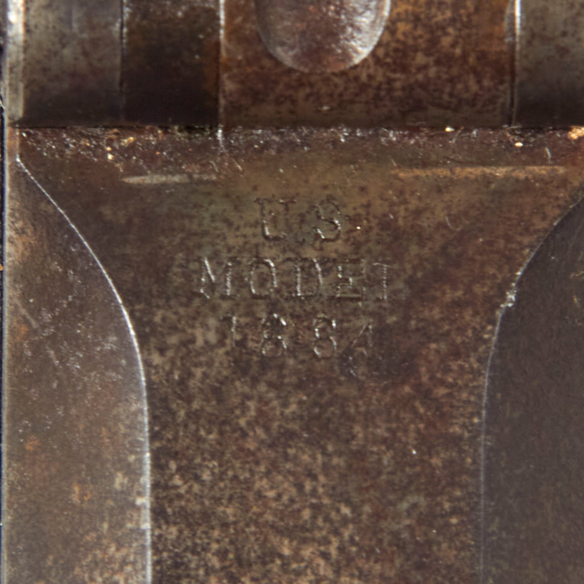 The elegant script SWP belongs to Samuel W. Porter, who was the Master Armorer and Chief Inspector of Springfield Armory from 15 September 1879 to 18 June 1894. A very faint stylized P in a circle under the wrist of the stock indicates that the rifle passed all of its overpressure proof testing. Additional marks of interest include inspectors' and proof marks around the breech end of the barrel: a capital I on top; and a P over an Eagle's head over another P on the left side just above the stock. The upper right corner of the Buffington sight leaf is marked R to indicate that the sight graduations are for a rifle and not a carbine.