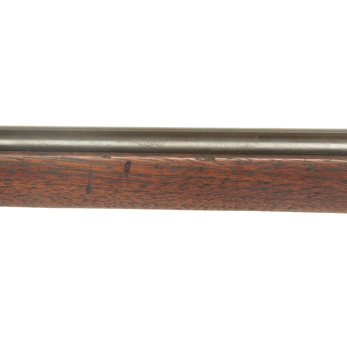 The rifle features an nice un-sanded stock with the edges still proud over the lock plate. It has some scratches and dings, as well as wear from the years, but has a great finish and nice dark brown color.