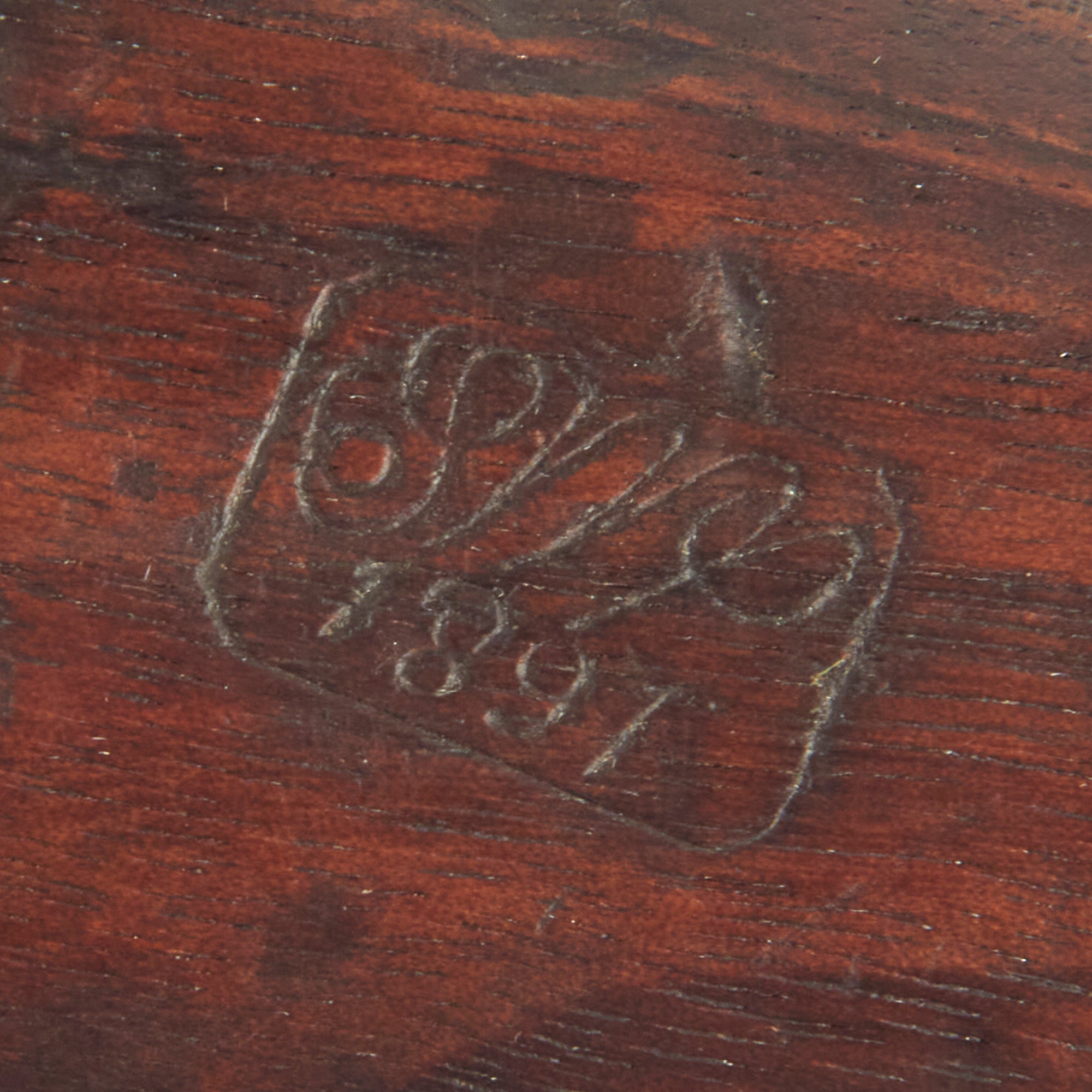 The elegant script SWP belongs to Samuel W. Porter, who was the Master Armorer and Chief Inspector of Springfield Armory from 15 September 1879 to 18 June 1894. A very faint stylized P in a circle under the wrist of the stock indicates that the rifle passed all of its overpressure proof testing. Additional marks of interest include inspectors' and proof marks around the breech end of the barrel: a capital A on top; and a P over an Eagle's head over another P on the left side just above the stock. The upper right corner of the Buffington sight leaf is marked R to indicate that the sight graduations are for a rifle and not a carbine.