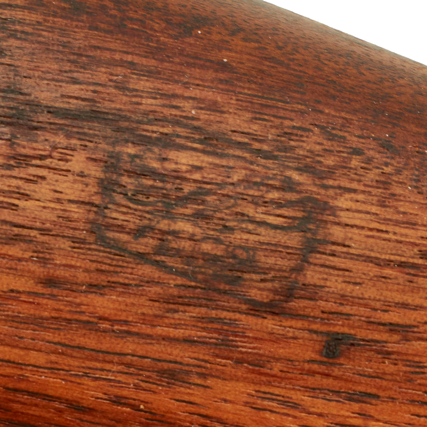 The stock is in very good condition, and is still mostly proud over the lock plate, indicating the stock has not been worn down or reconditioned. There are a few dents and small chips from service, but it's got a lovely red brown color and patina, only achieved from decades of use and cleaning and polishing.