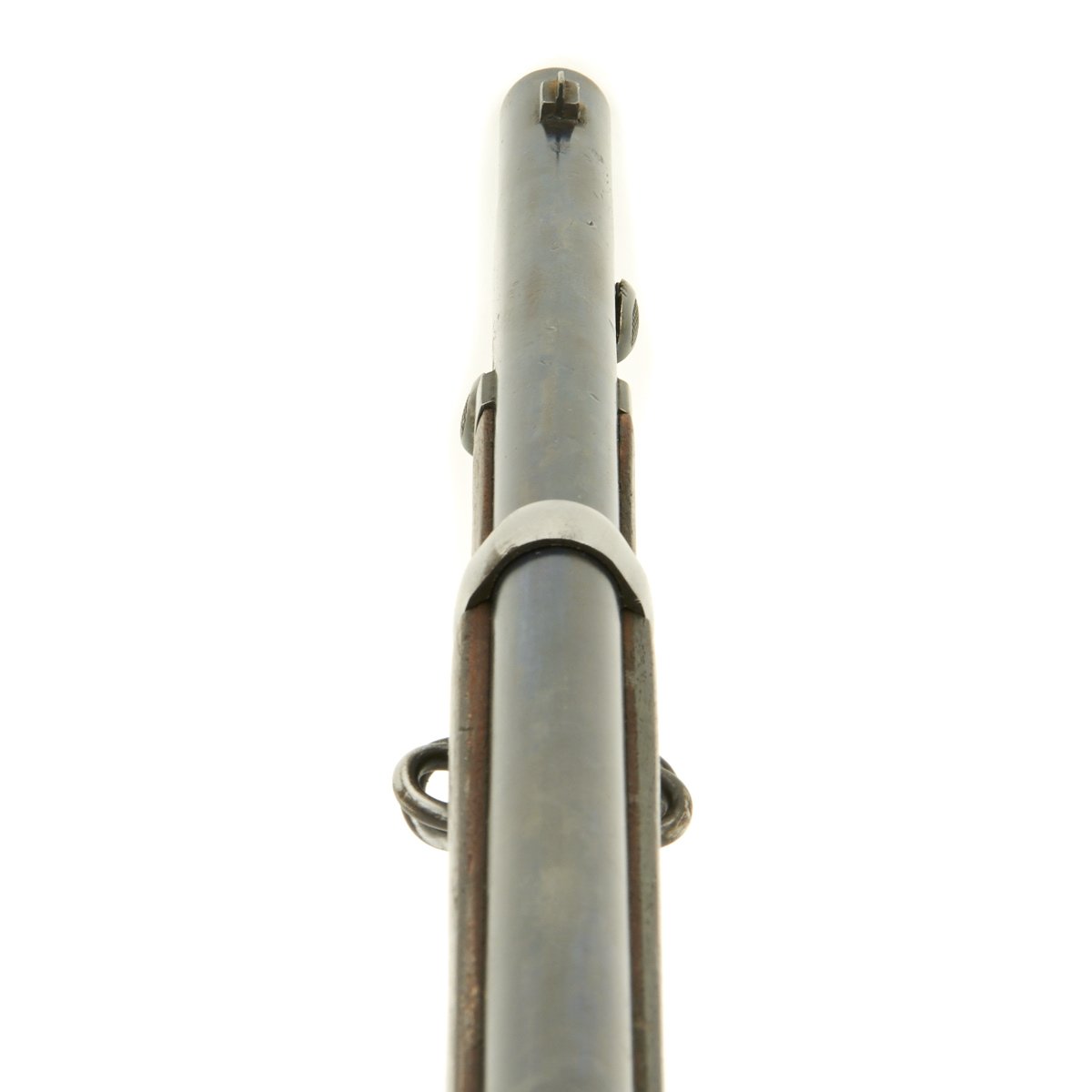 These guns may be found with an assortment of front sight covers; this one has the standard third-type blade front sight, along with a rare front sight hood, that appears to have been added after manufacture.