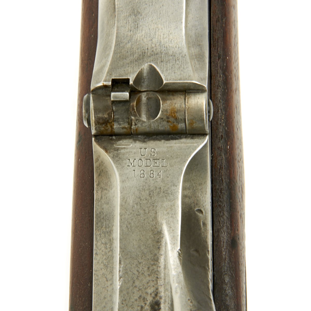 MODEL1884In 1884 the integral Round Rod Bayonet was introduced, which could double as a cleaning rod, a development that met with very limited success. It was finally replaced in 1892 with the .30-40 caliber Krag bolt action magazine rifle.