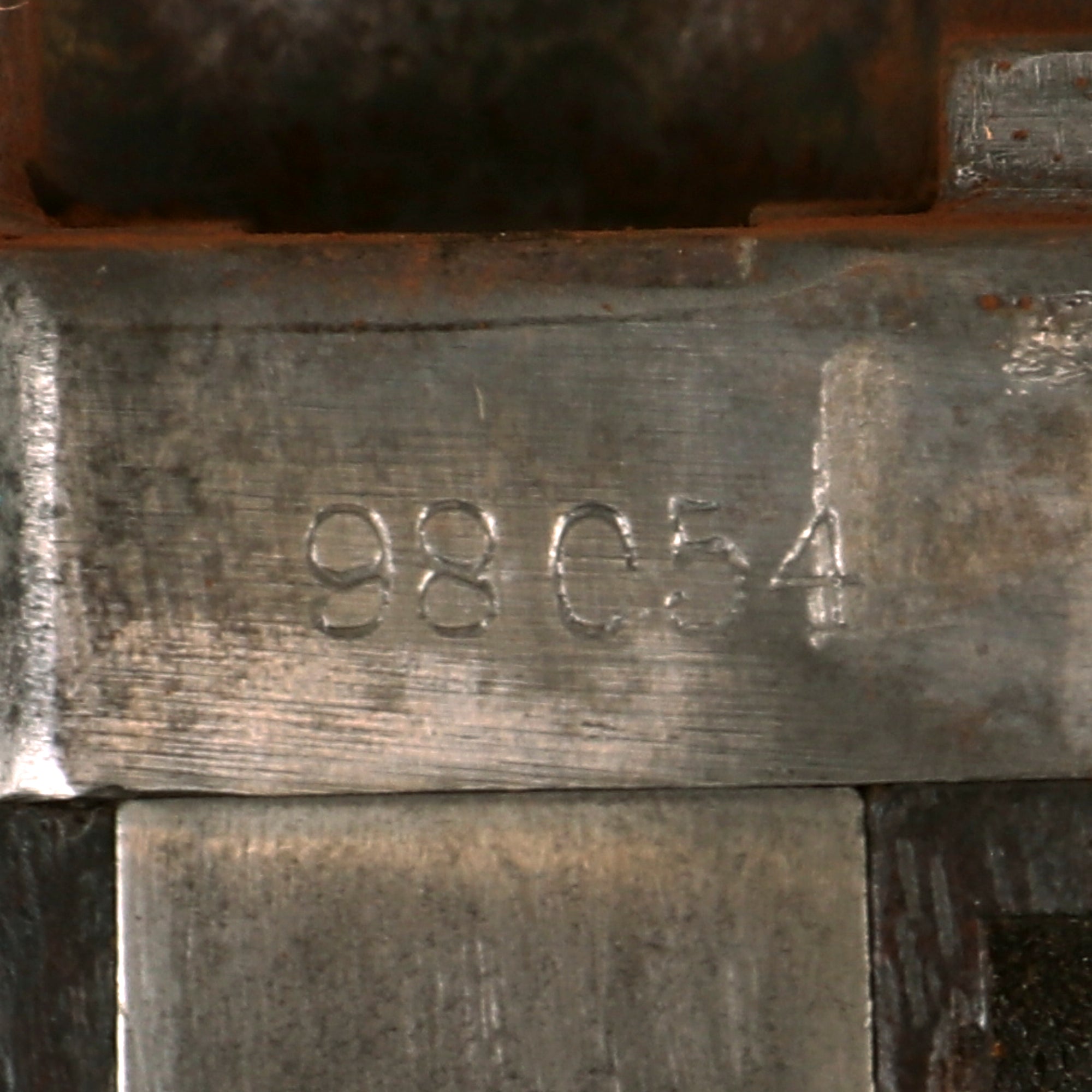 The stock is in very good service used condition, and is still fully proud over the lock plate, indicating the stock has not been worn down or reconditioned after it was updated. There is some overall wear and scattered denting from service, as expected on a rifle that did see actual use in service. It has a fantastic lovely dark red brown color with clear grain, only achieved after decades. Another nice feature on this example is the butt stock tool compartment, which is covered by a rotating door on the butt plate. This was used to store the take down tool and stuck cartridge extractor. This example is unfortunately empty.