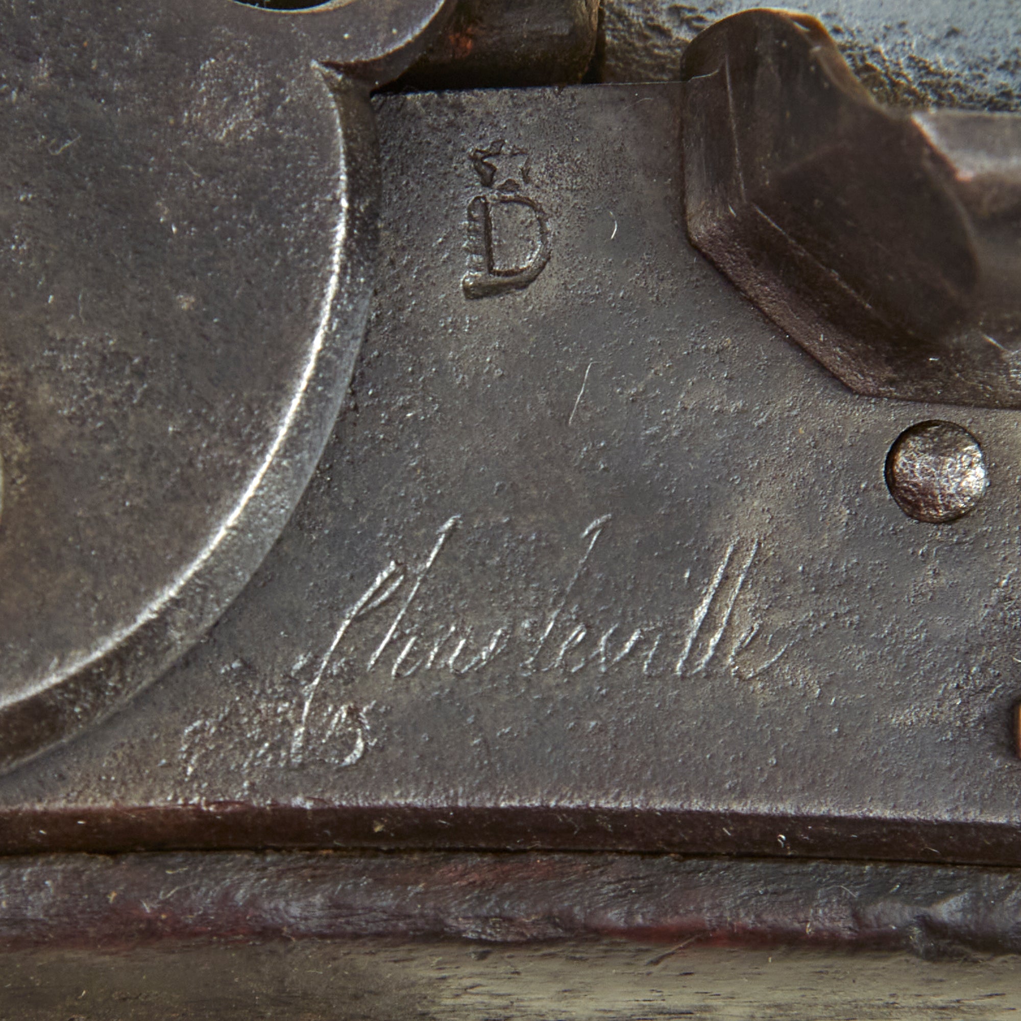 This example however is actually marked under the angular flash pan with Charleville, indicating production at the famed ARSENAL at CHARLEVILLE. This Arms Manufacturing installation was located in Charleville-Mézières, Ardennes, France, to the far north east of Paris, and was responsible for developing the famous "Charleville" muskets of the line and many other firearms. It was later closed, as it was realized that having an arsenal that close to the eastern border of France was not strategically viable.