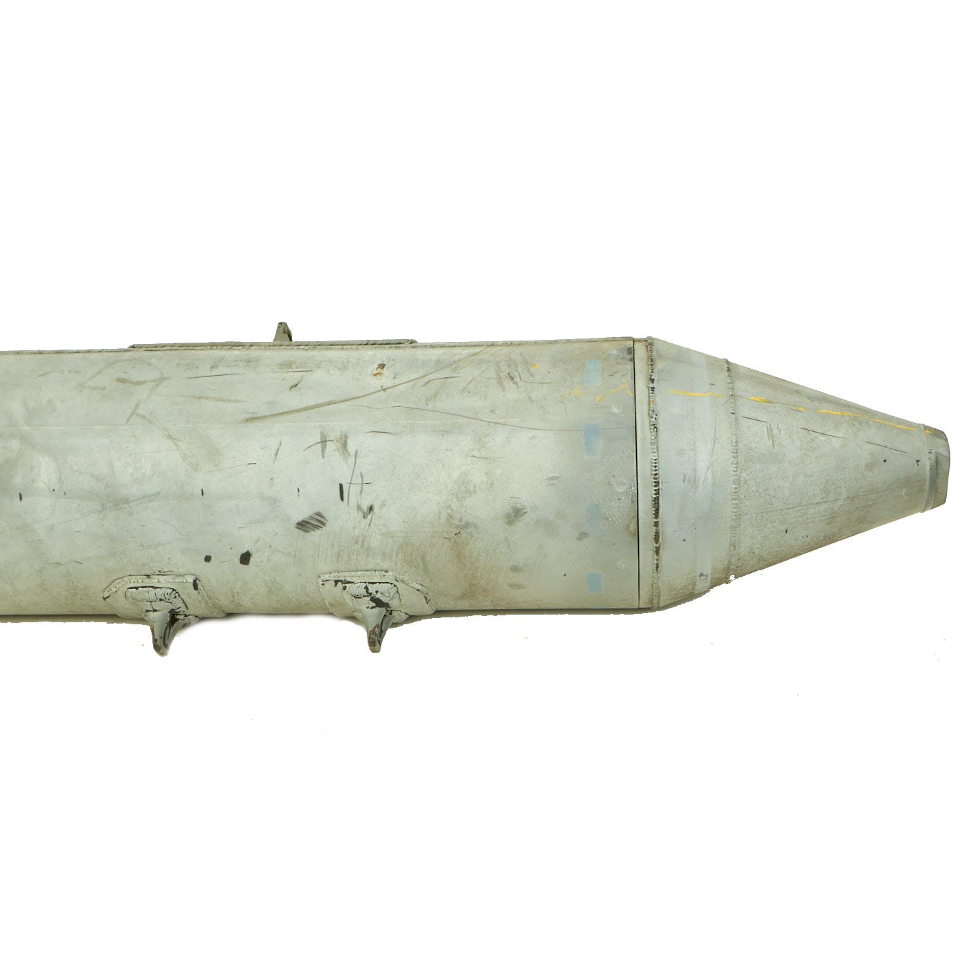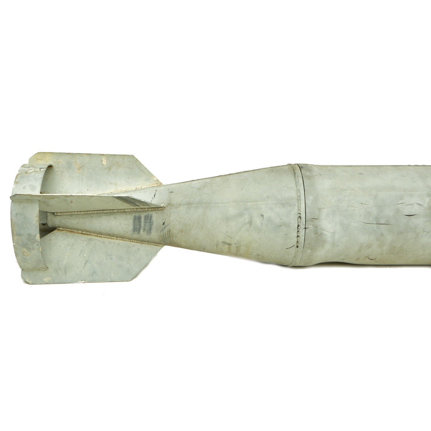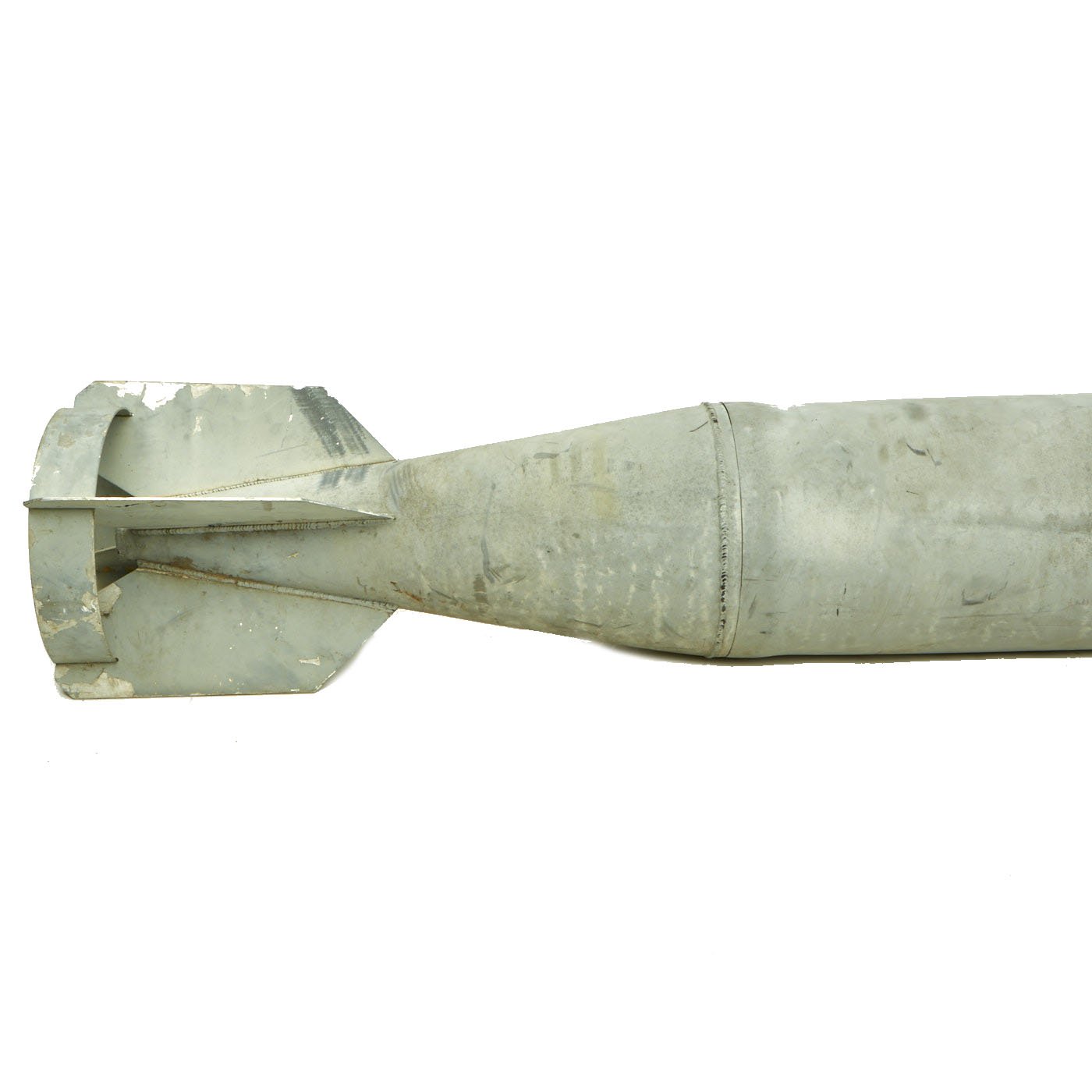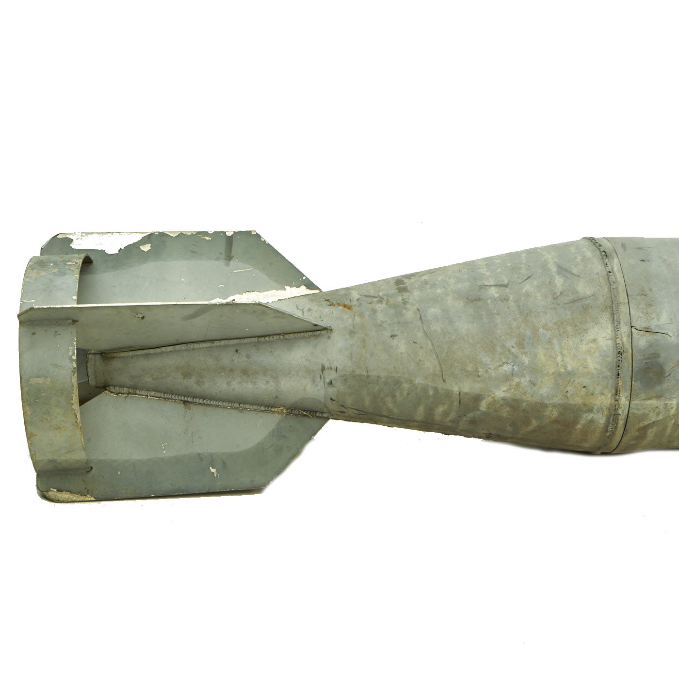 Original Item: Only One Available. This is an inert training bomb designed to appear like a version of the FAB-500 General Purpose Bomb, perhaps the FAB-500 M-46. The FAB-500 is a Soviet designed, general purpose, air-dropped bomb with a total weight of 500 kilogram with a high-explosive warhead, primarily used by the Russian Air Force, former Soviet republics and customer Countries. The original M-54 model was rolled out in 1954, shaped for internal carriage by heavy bombers, a low-drag M-62 version in 1962 was intended for fighter bomber external hard point carriage. The bomb is unguided, features a single nose fuse, and is compatible with most models of Soviet aircraft. The FAB-500 was largely employed over Afghanistan by Soviet and allied Afghan forces during the 1980s. It has been used most recently over Syria by both Russian and Syrian warplanes.