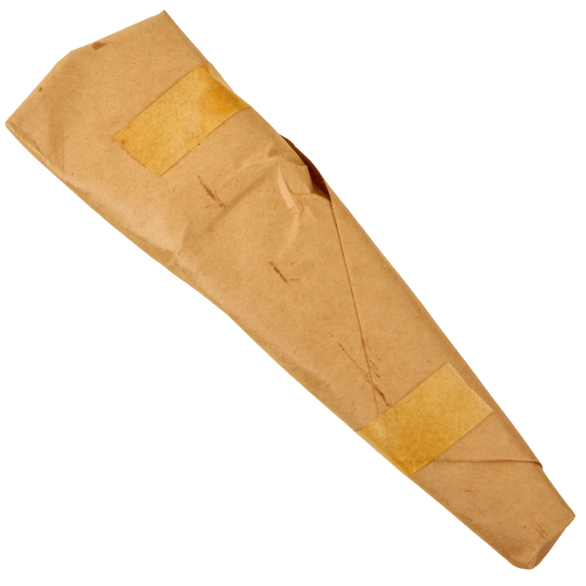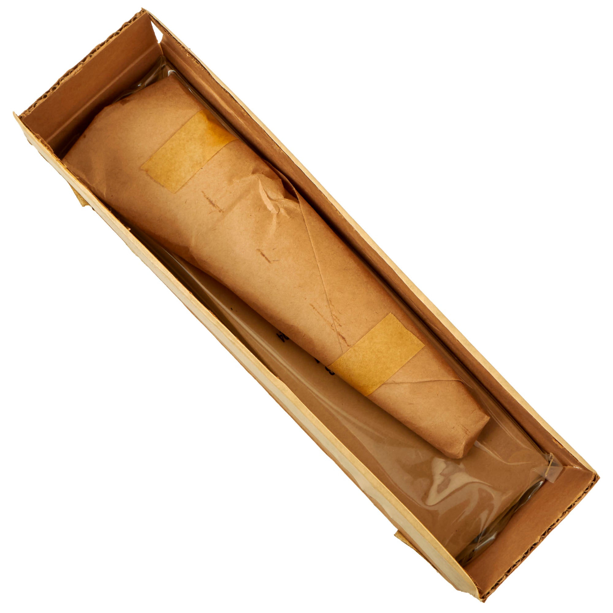 The sheath is wrapped and taped separately from the bayonet which is still in its original box sealed by plastic. The plastic reads: