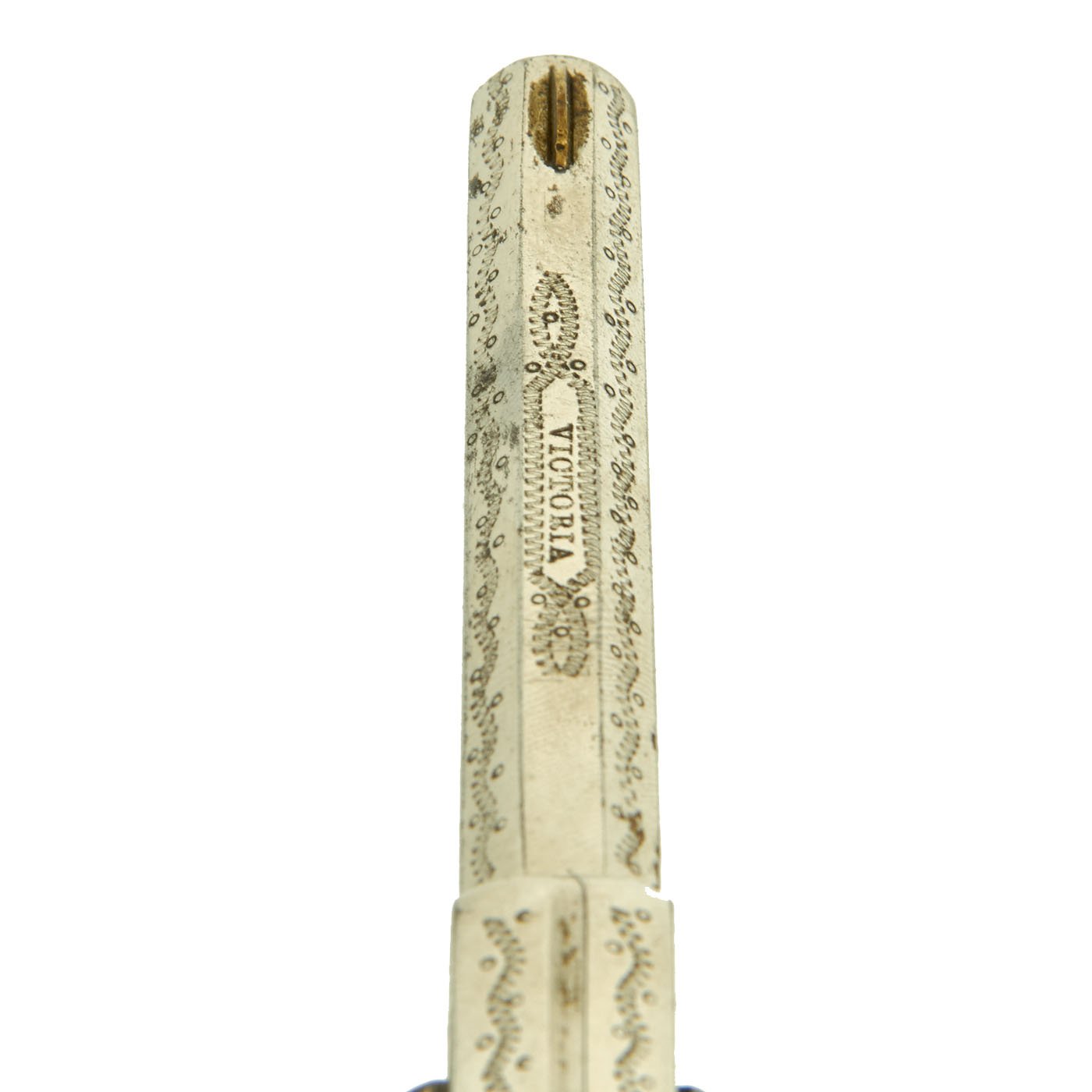 Original Item: One of Kind. This is a beautifully made small 7 shot .22 short revolver Circa 1885, made for self protection, maybe for a Lady's purse. It is marked VICTORIA on the top of the barrel, and also is marked with serial number 925 on the bottom of the grips, with 25 on the cylinder axis pin. It also is marked on the left barrel flat with PAT. APR. 6. 1875.