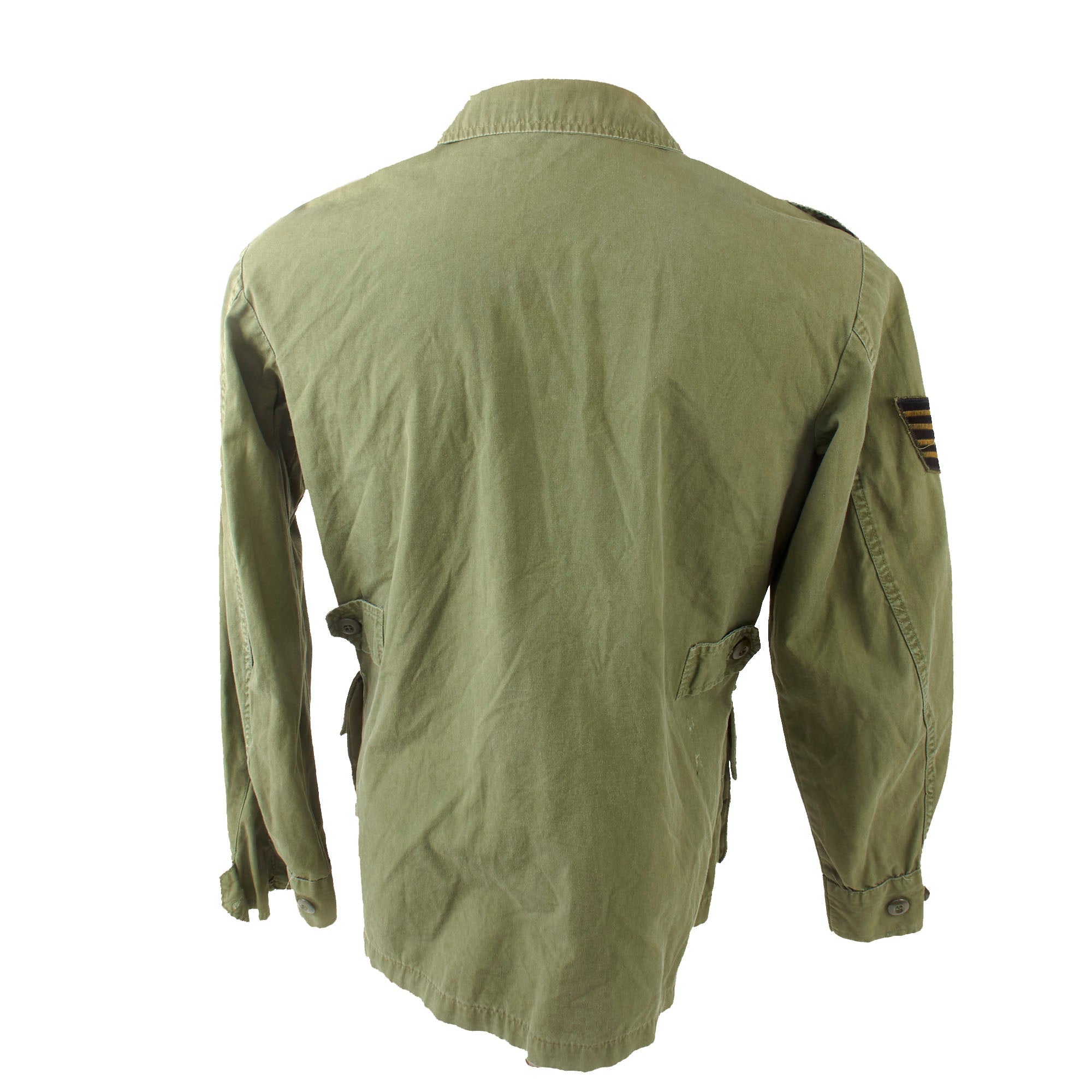 Original Item. Only One Available. Vietnam Jungle Fatigues with original applied insignia are becoming incredibly hard to find at present. This particular jacket has the tell tale signs of having had the insignia applied for a long time, such as the bunching of material on the reverse of the patches inside the jacket. This undoubtedly was a Jacket which saw service in Vietnam then returned home with a veteran!
