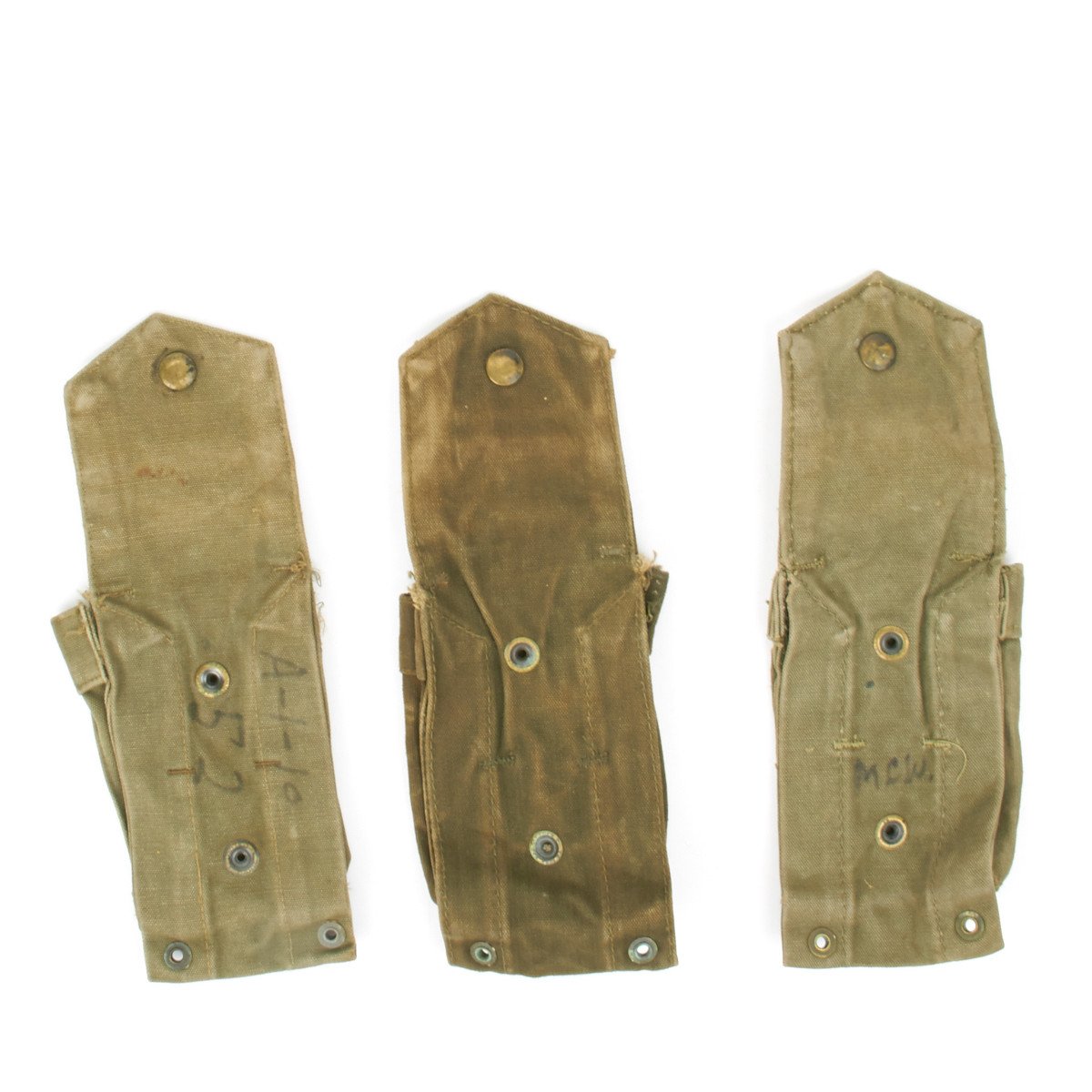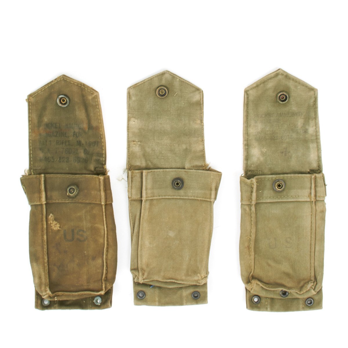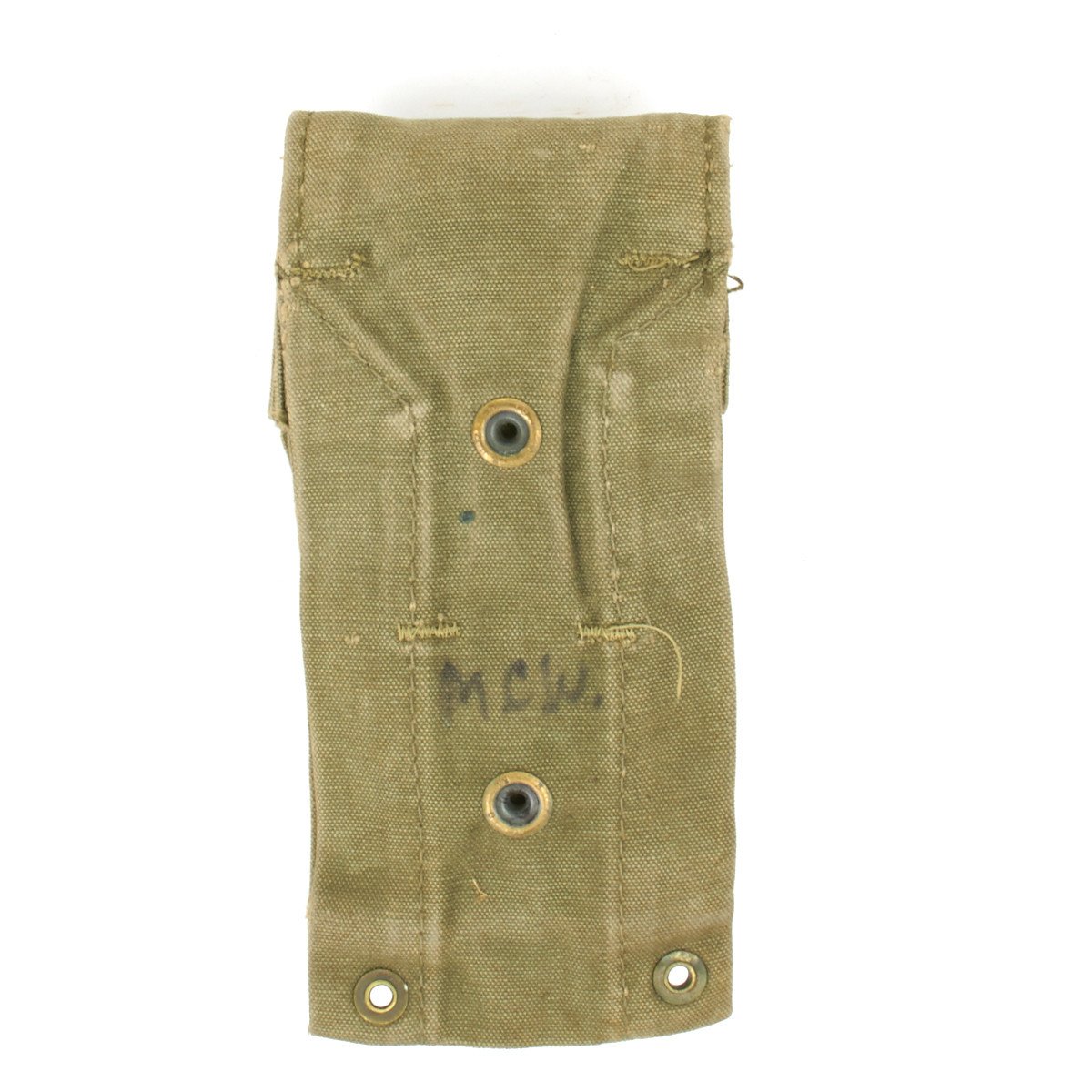 Original Item: The basic design of the United States Marine Corps cotton M1961 ammunition pocket, which accommodated a single 20-round magazine for the M14 rifle, remained constant throughout the Vietnam War, though the pouch and flap were lengthened slightly in late 1964.