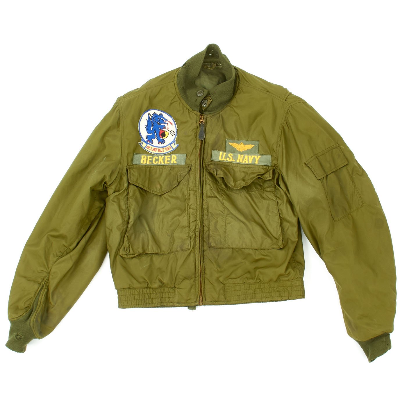 Original Item: Only One Available. This is an excellent condition MA-1 flight jacket that features and embroidered HA(L)-3, (Helicopter Attack Squadron (Light) 3) "Seawolves" insignia patch to the right chest, Viet Nam Hunting Club patch to the right shoulder, name tag that reads BECKER and U.S. NAVY Naval aviator wings. Jacket is offered in very good condition with functional zippers and snaps. Size is approximately a US 42.