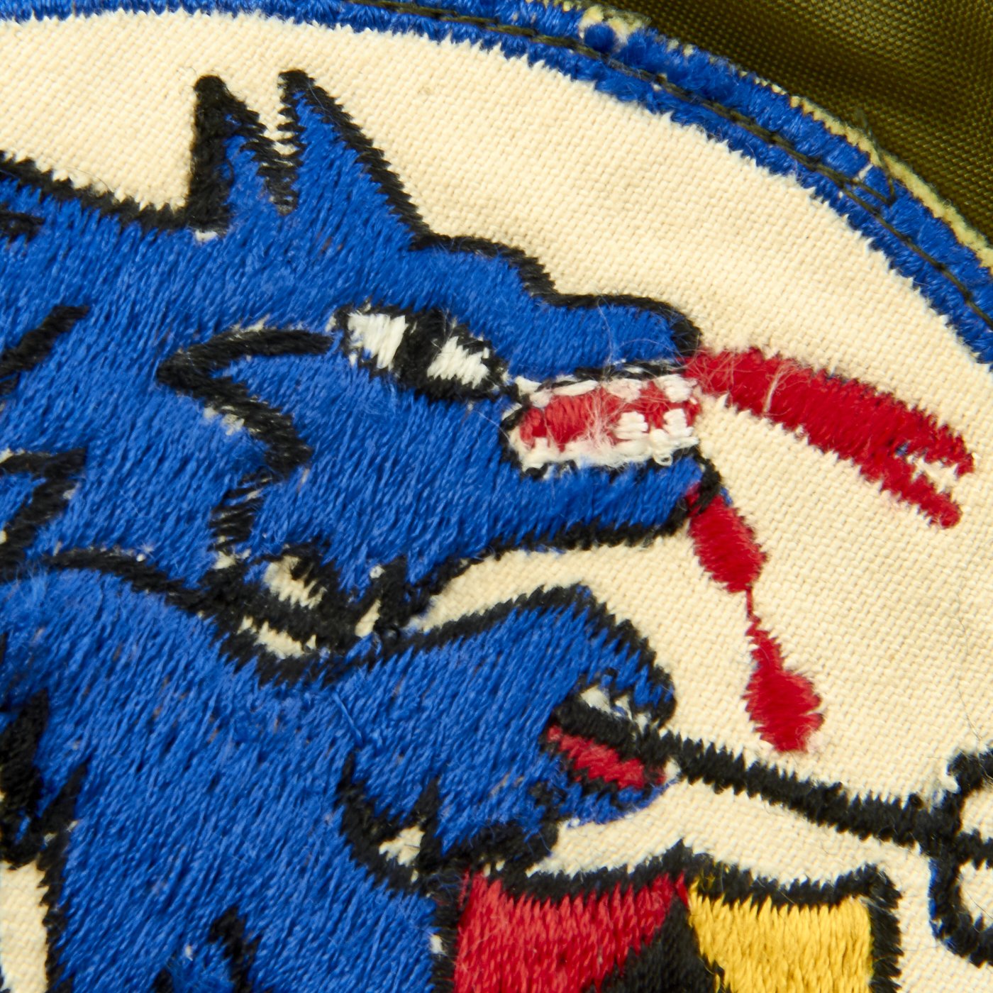 The wolf on the patch was inspired by the lion logo on a Löwenbräu beer can; a trident as a symbol for the Navy was added, and a shield with a spade as a symbol for death with red and yellow coolers as found on the flag of South Vietnam.