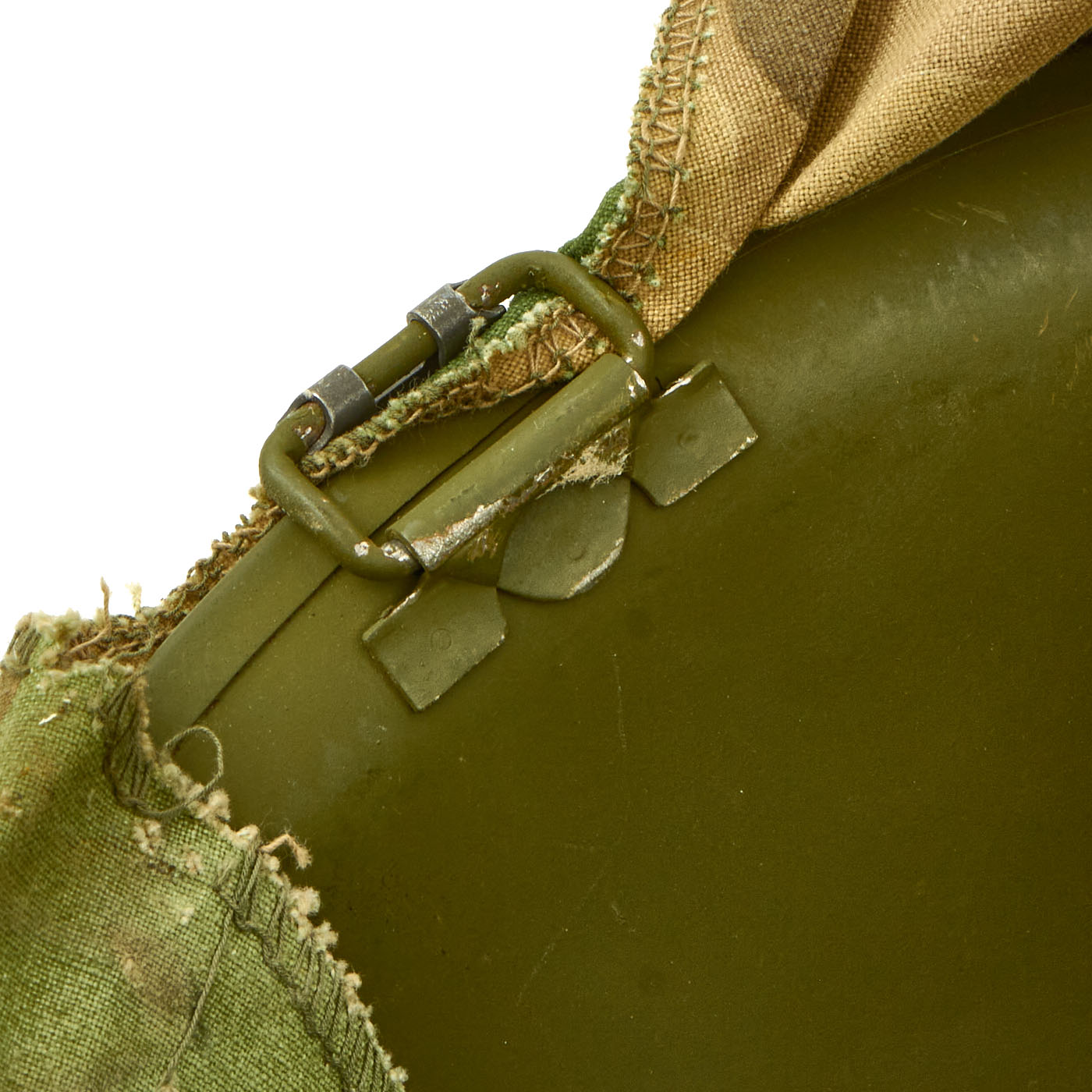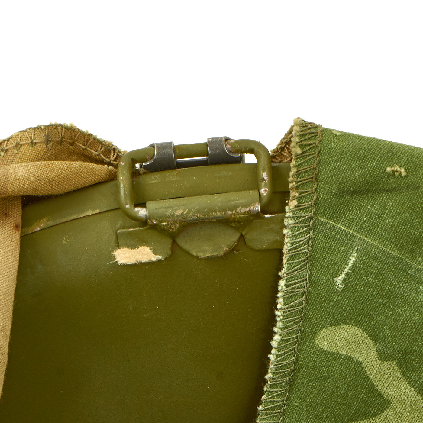 The included USMC reversible camouflage cover is in very good service worn condition, complete with the elastic securing band. There is a bit of wear through around the edges, and overall fading, typical of a cover that saw actual service in the field.