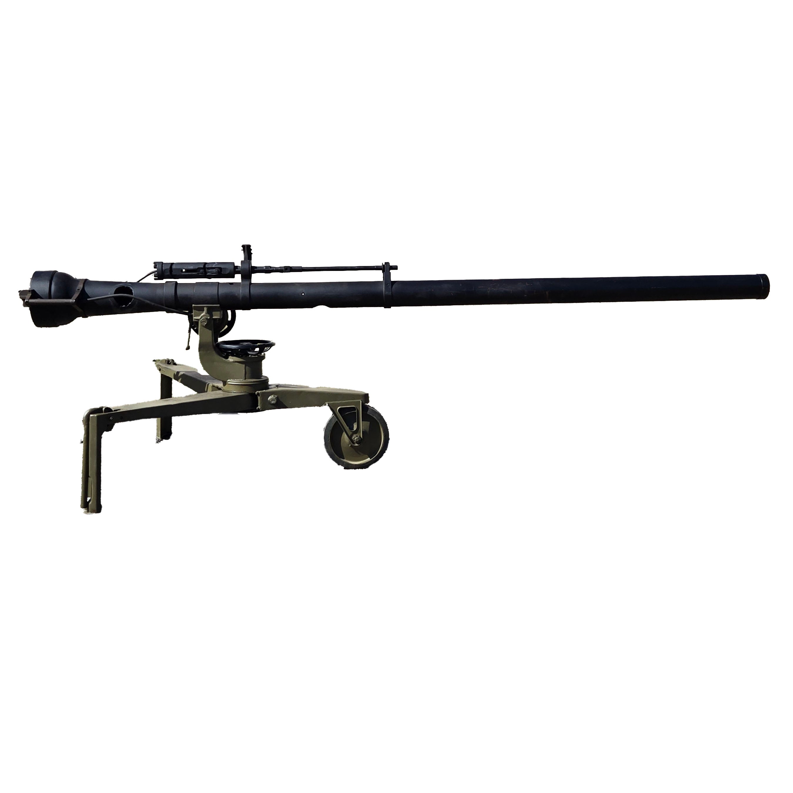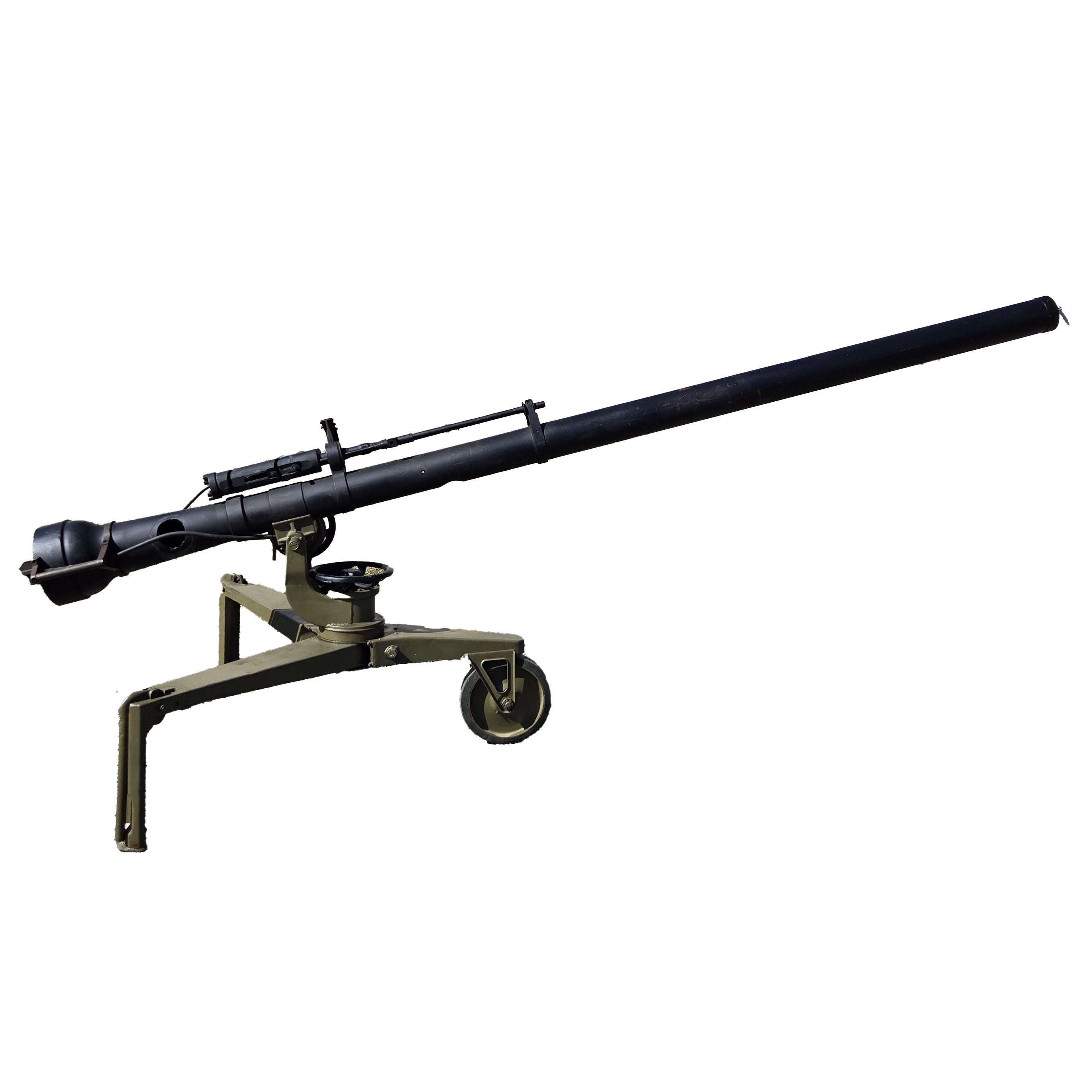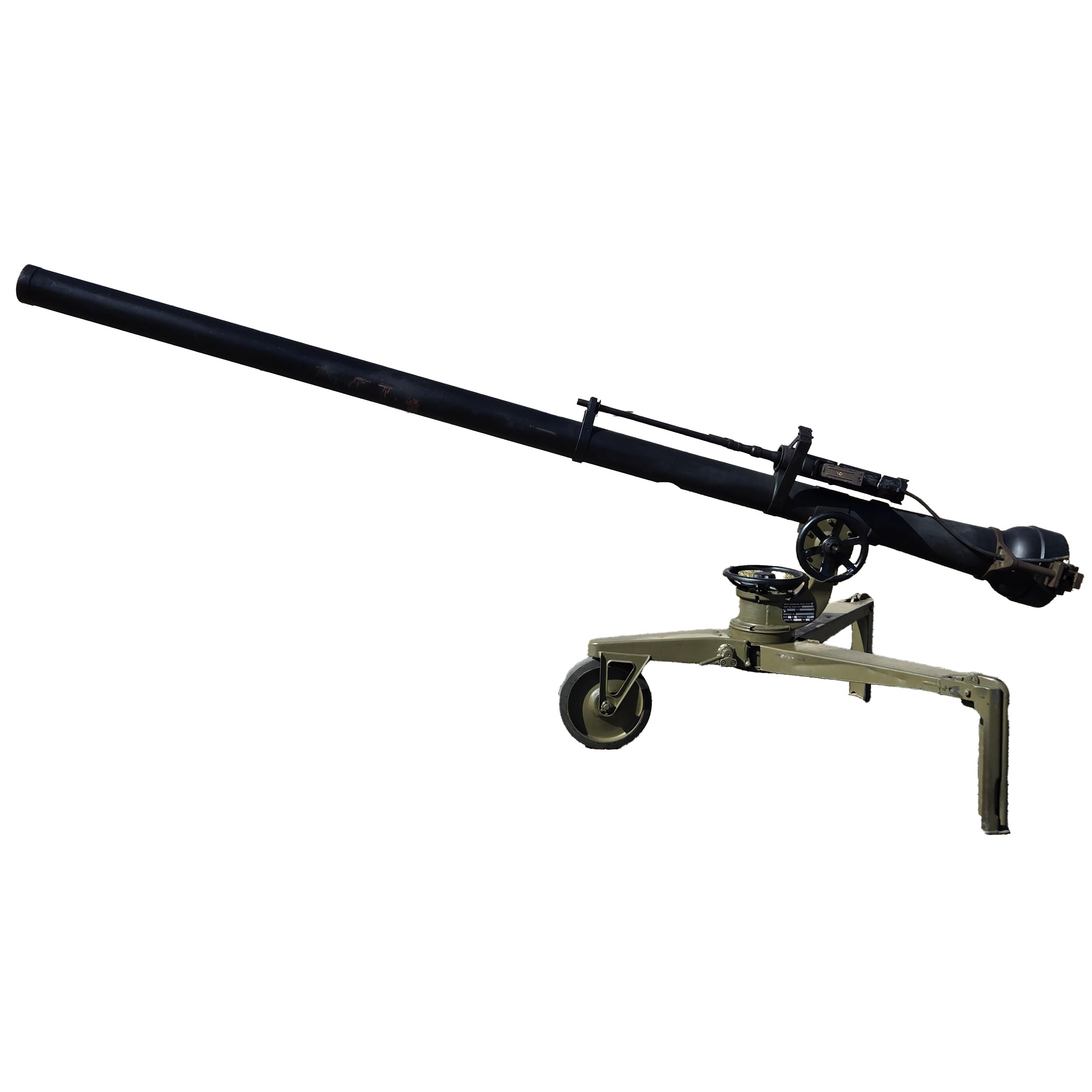 This example is offered in very good condition with the original finish well preserved, and comes on the original tripod mount, which is partly functional. The elevation control definitely still works, however the traverse adjustment is currently non functional, but may be able to be repaired. There is no sight mounted to the rifle, which could use any number of different optical or "starlight" sights. There is some damage wear from service, but they are minor, and the piece really looks fantastic. It weighs about 500-600lbs, and measures about 11 feet long, so this definitely requires quite a bit of space to display.