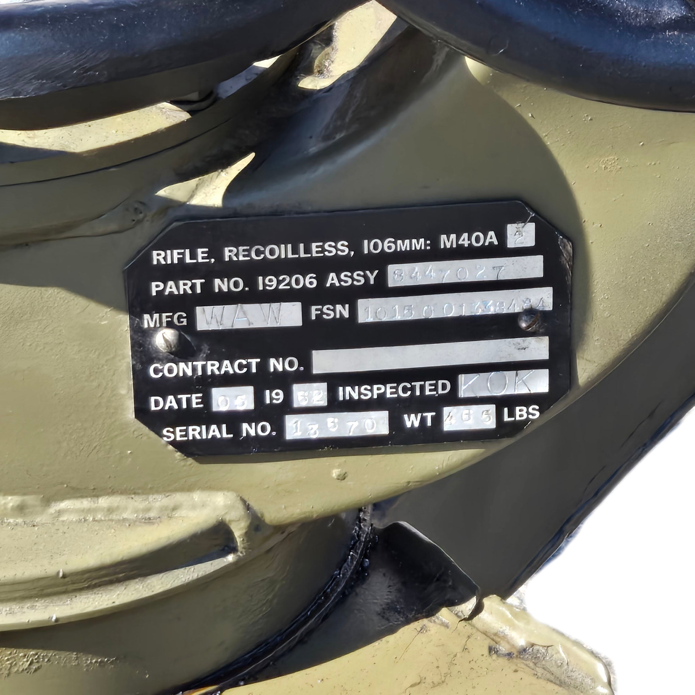 Original Item: Only One Available. This is an incredible find, the only example that we have ever had! A totally authentic Vietnam War Era M40A2 Recoilless Rifle with the correct M8C .50cal Spotting Rifle, both of which have been rendered totally inert (de-militarized) in compliance with BATF specifications.
