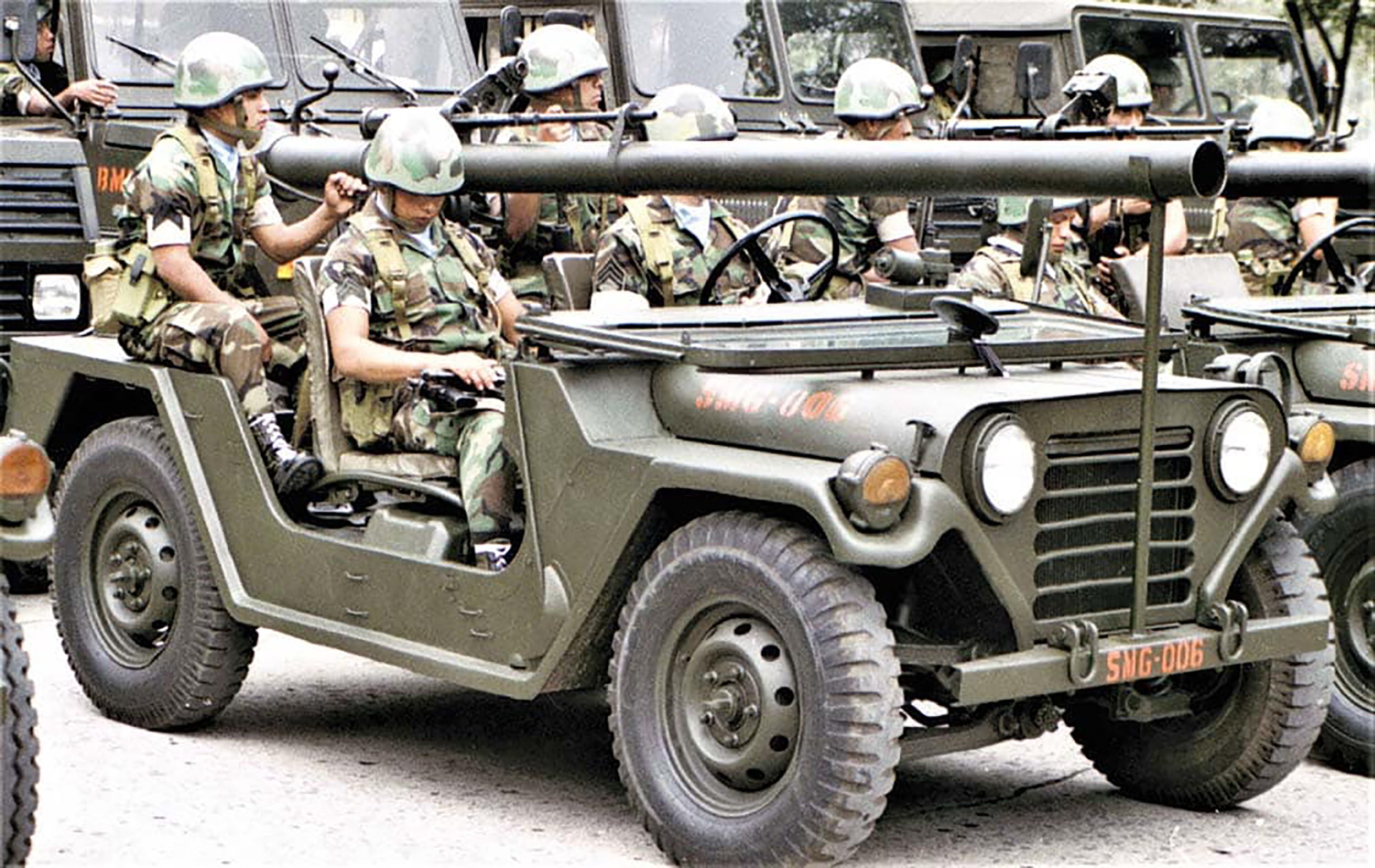 The whole mounting can be placed on an M151 Jeep for mobile use. It has also been mounted on M113s, UMM 4x4s, Mahindra jeeps, Fath Safirs, Land Rover Defenders,[ Mercedes-Benz G-Wagen, Hotchkiss M201 jeeps, Toyota Land Cruisers,, Jeep CJs, Willys M38s, HMMWVs, M274 Mechanical Mules, Tiuna 106mm weapons platforms, KADDB Al Jawad vehicles, RBY MK 1s, AIL Abirs and AIL Storms. They were also used on US Navy minesweepers (MSO) during Operation Market Time in Vietnam.