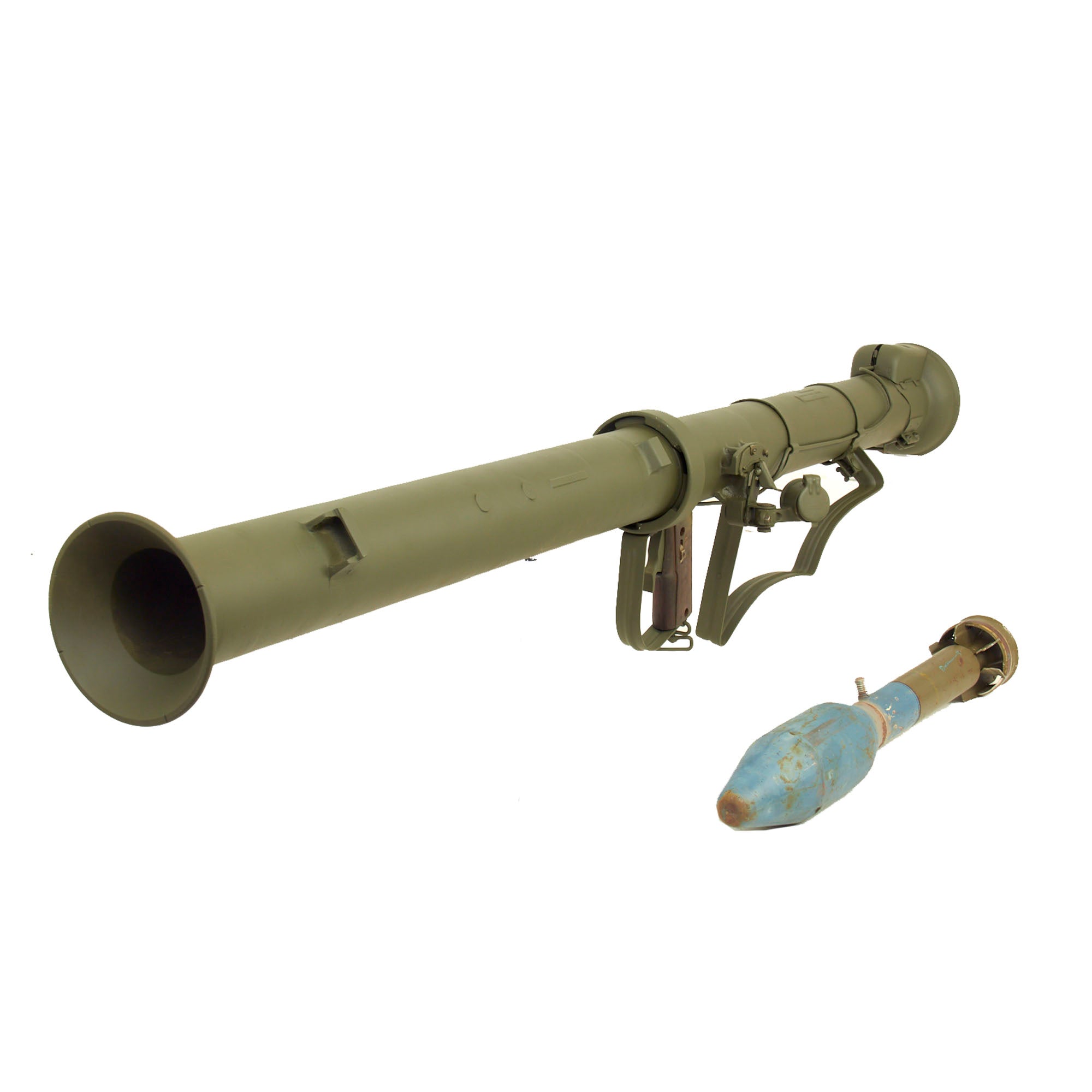 Original Item: Only one available. Once plentiful on the collector's market, these have become extremely hard to find and this example is offered in good condition. The classic Bazooka from the John Wayne Movies! This is the real McCoy, all cast aluminum two-piece take down construction, inert and deactivated to BATF specs.