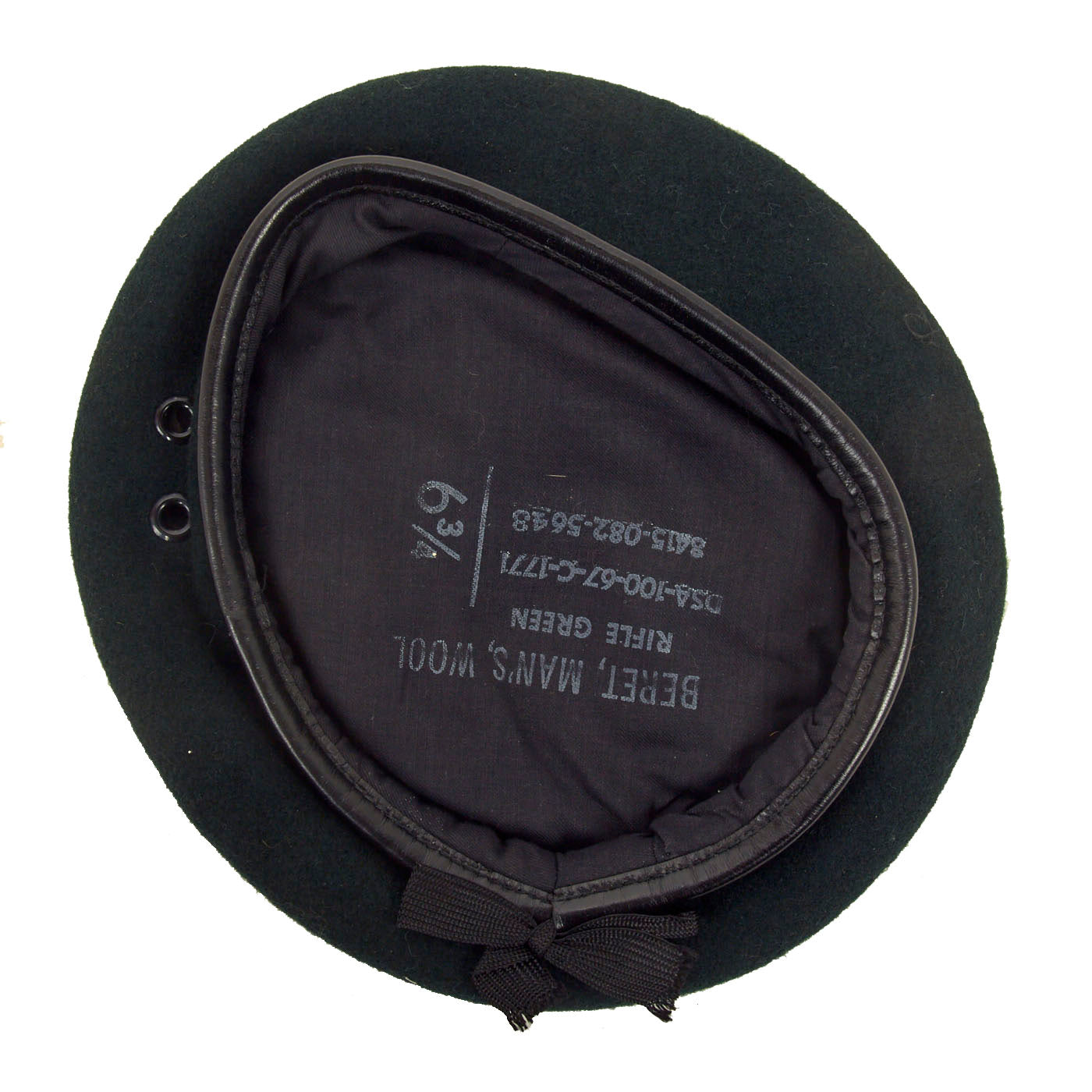Original Item: Only One Available. Now this is a beauty! A mint condition, unissued “Rifle Green” Special Forces beret dated from 1965. This is an untouched example and does not display any signs of ever having any badges, flashes or insignia affixed to it. It is a size 6 ¾ and still has the original white stamping visible on the inside.